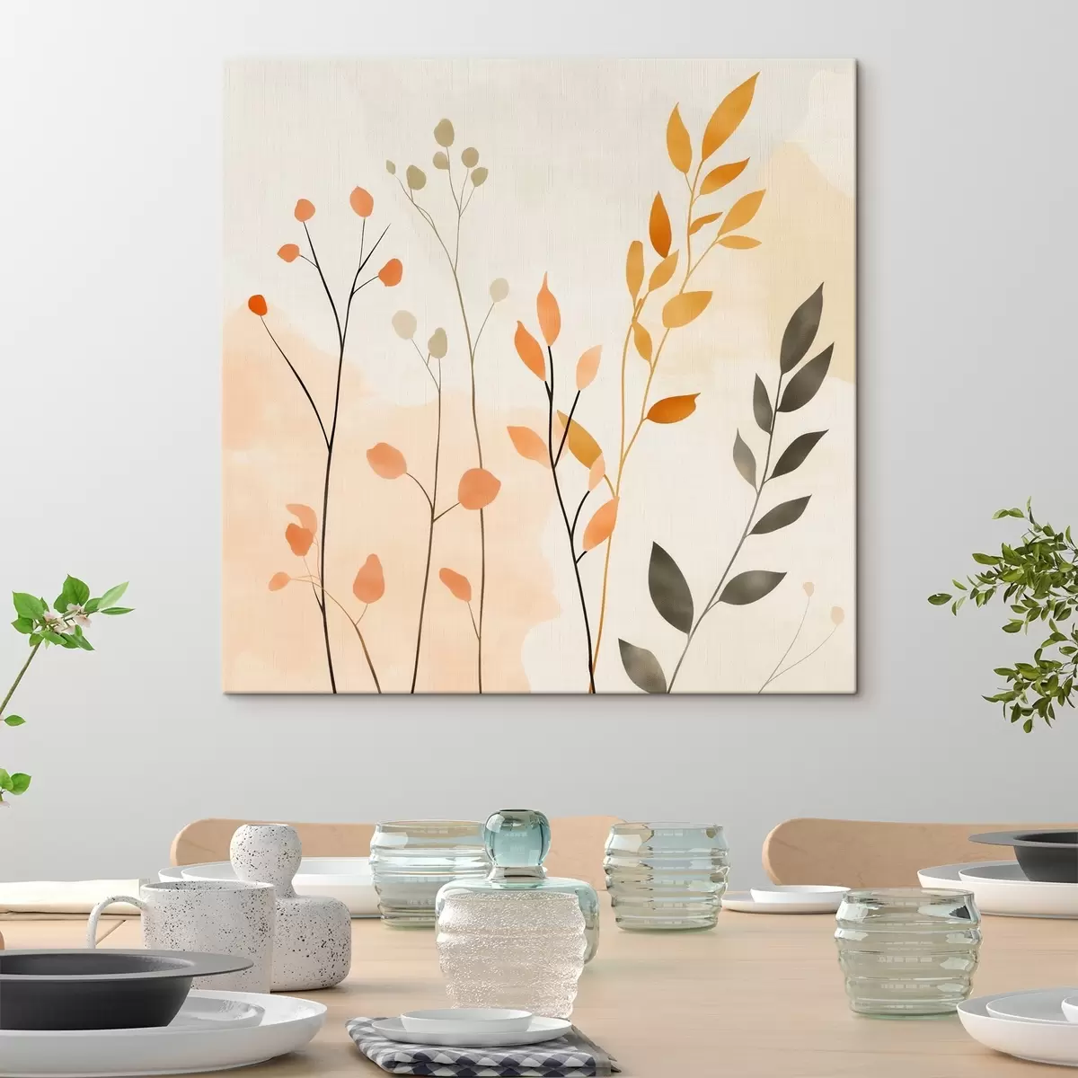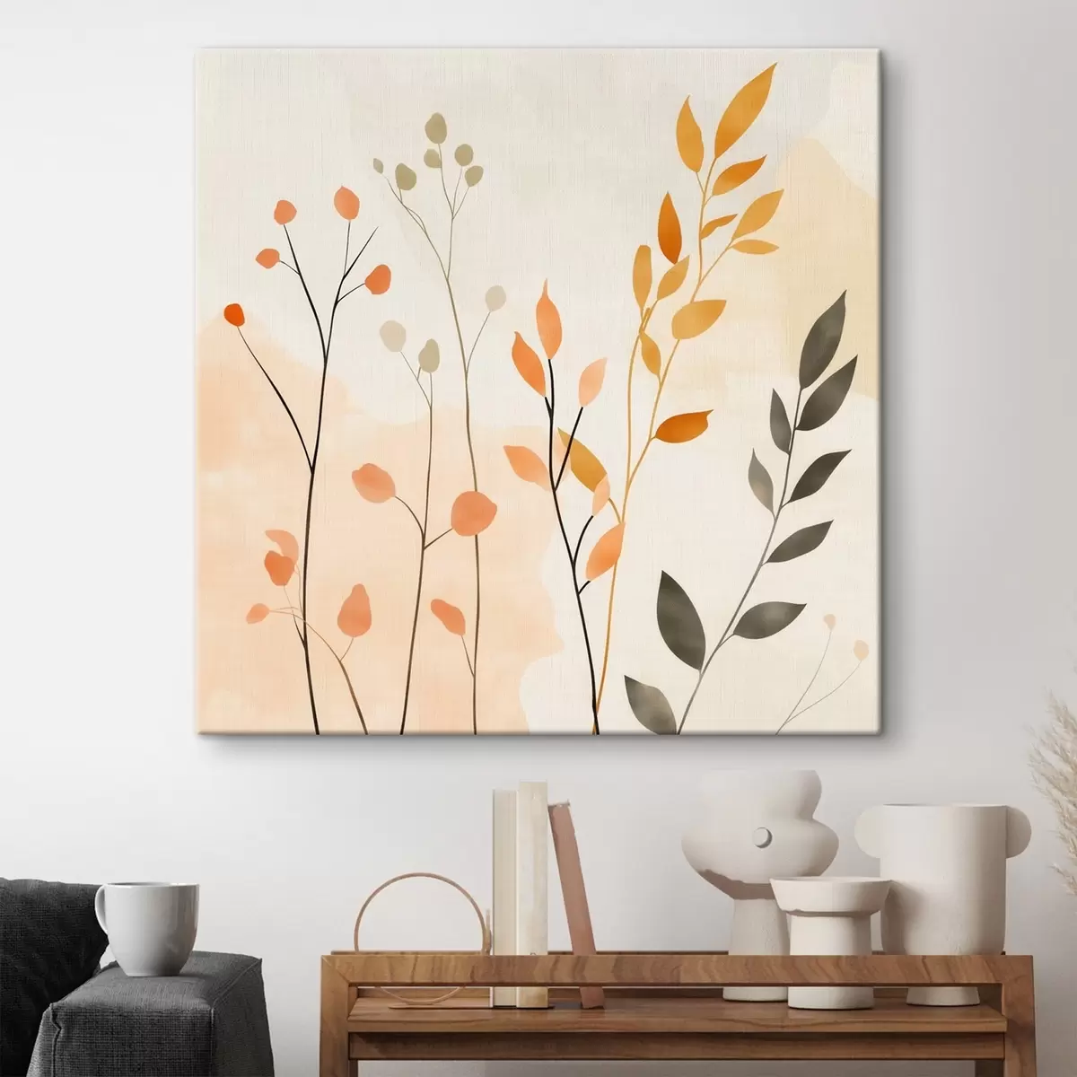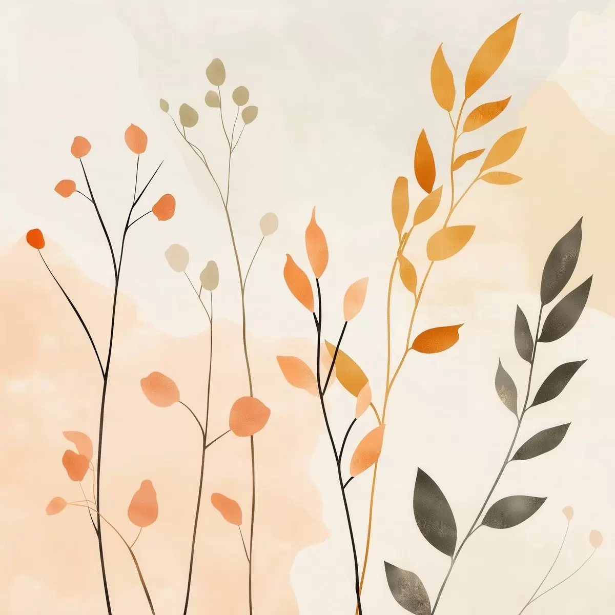Картина Пастельна композиція з витонченим листям у сучасному живописному стилі s48873