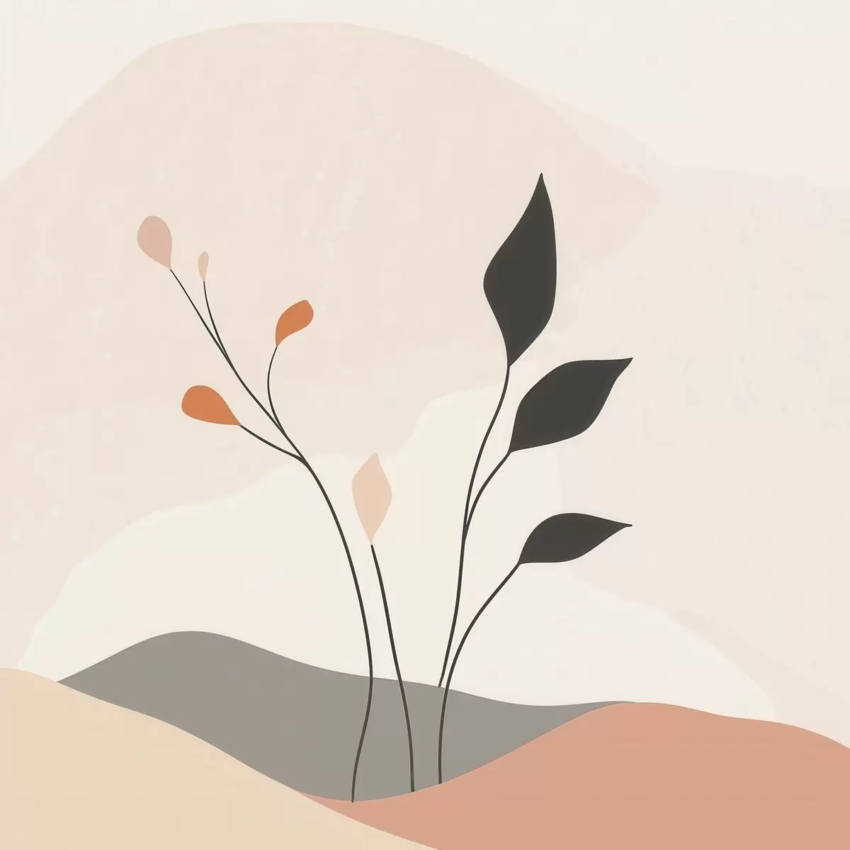 Картина Лаконічна композиція на рослинну тематику з органічними формами у стилі сучасного мистецтва s48874