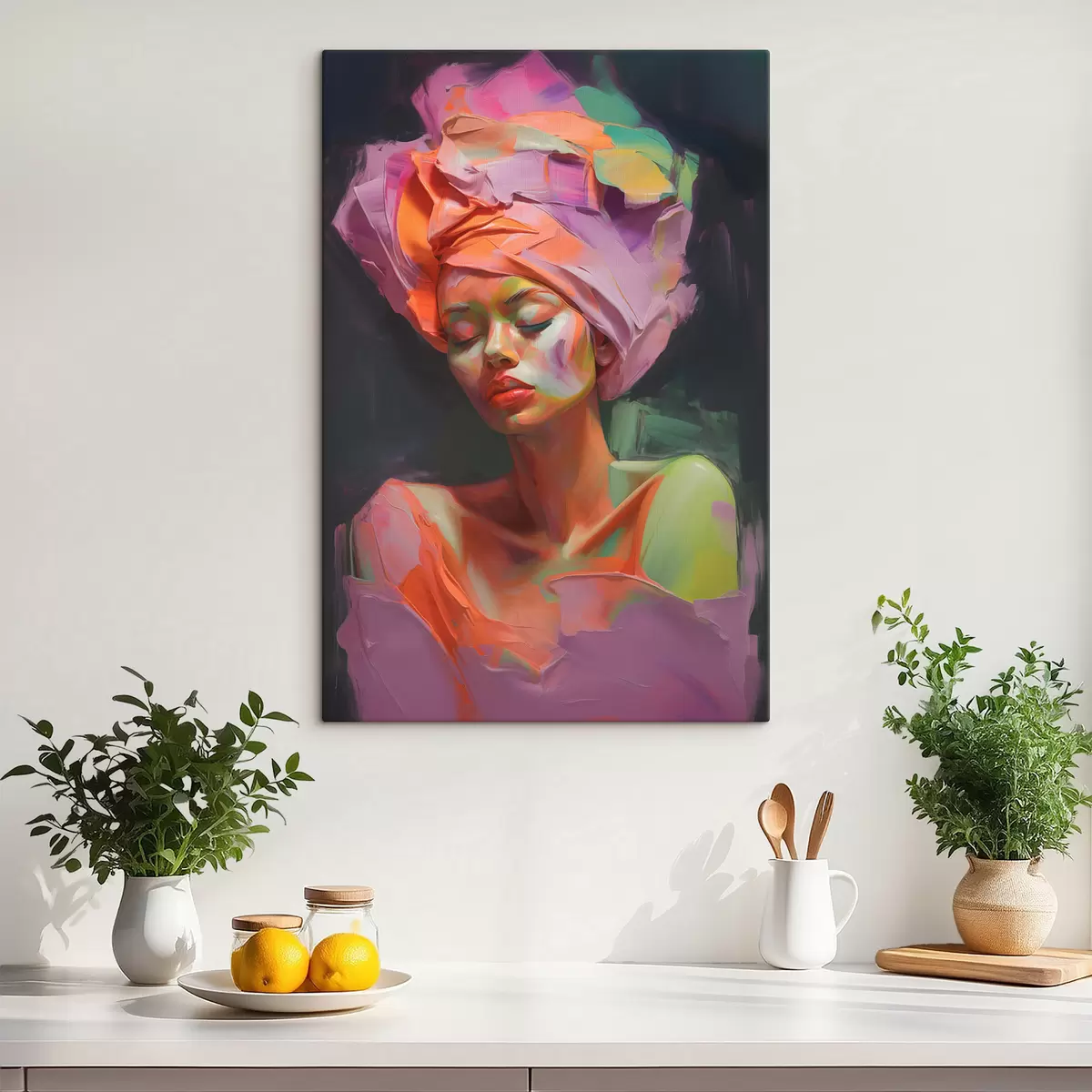 Картину можна повісити одразу після отримання. Картина буде натягнута на дерев'яний підрамник шириною 2 см.