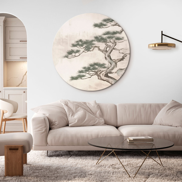 Східний ліс зі скелями, ставком і соснами, зелень, акварельний стиль