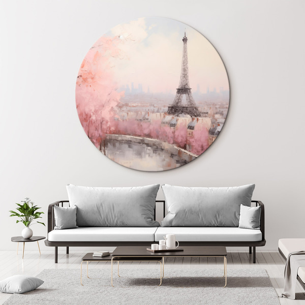 Ейфелева вежа в Парижі з весняним цвітінням сакур, м'які пастельні кольори