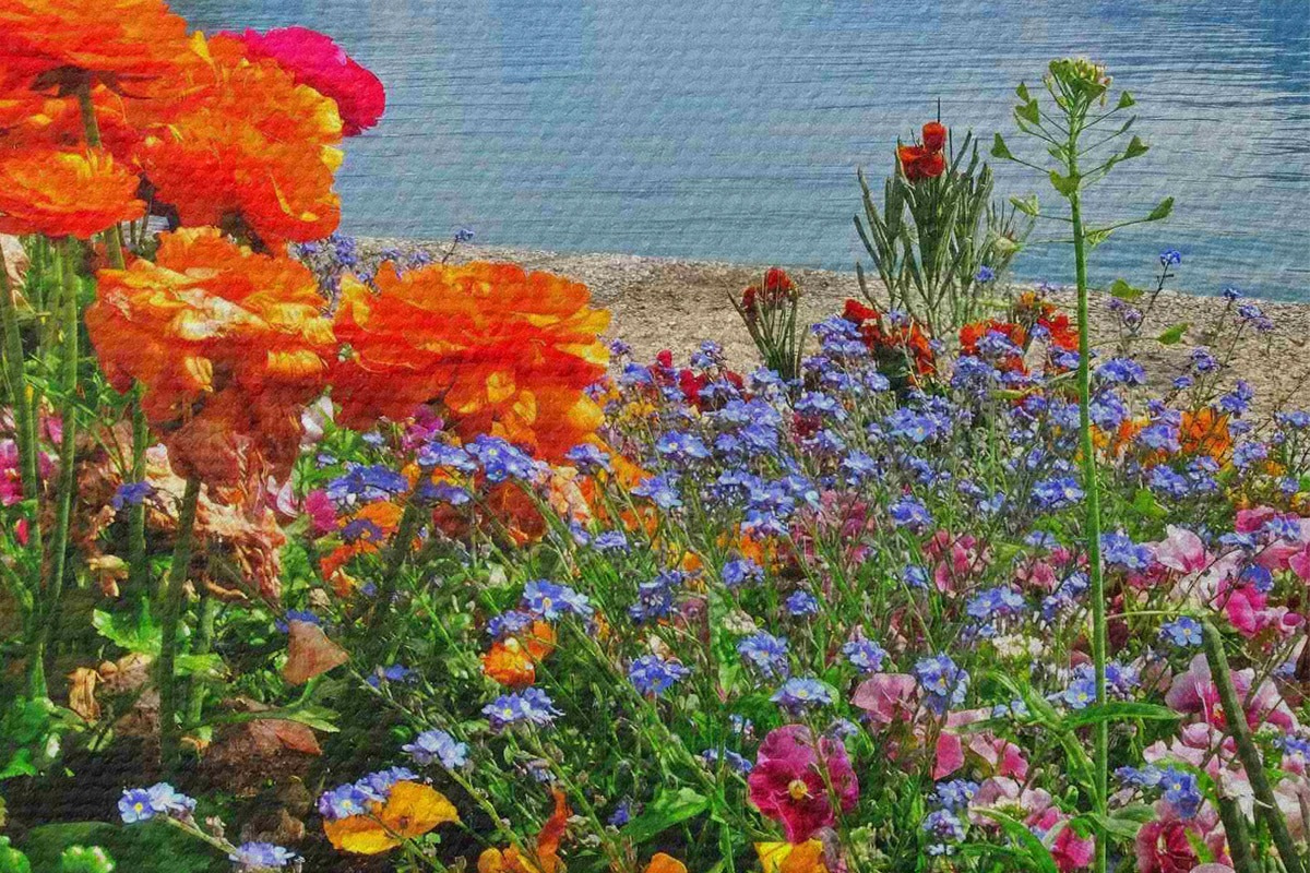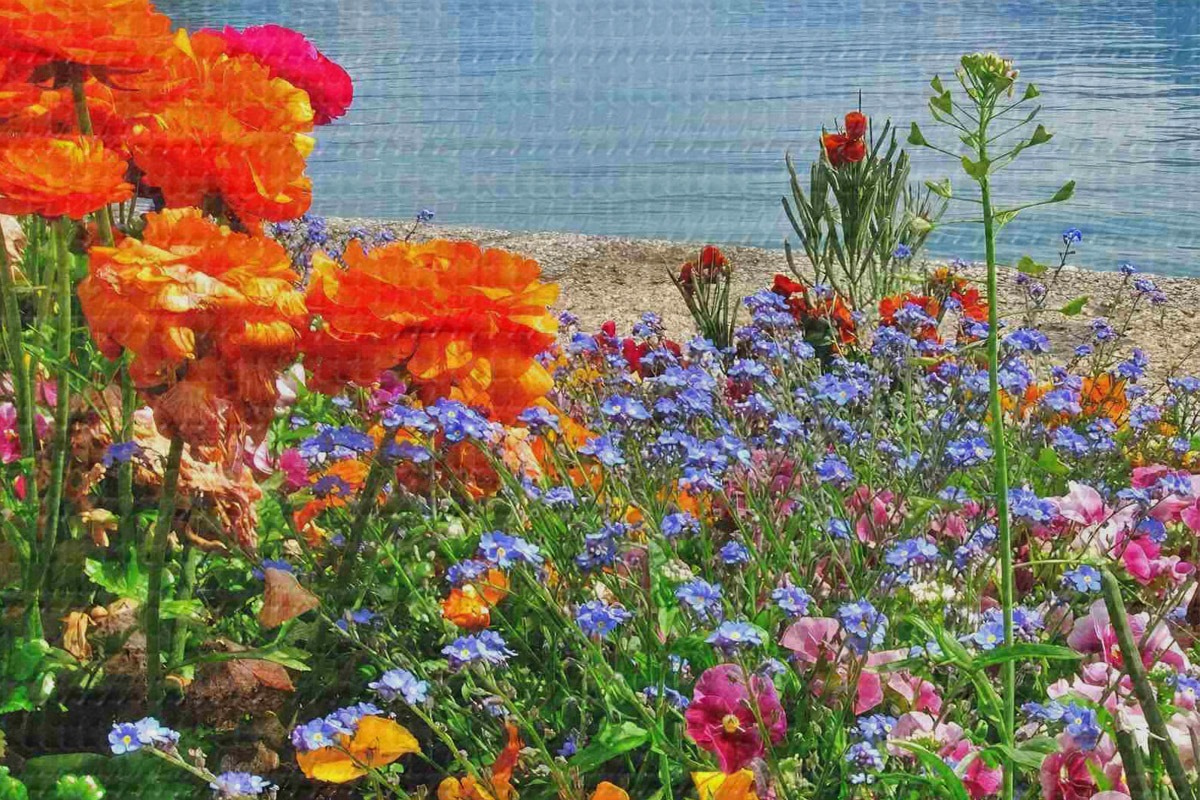 Кругла картина Вода, небо і квіти Nr r00006