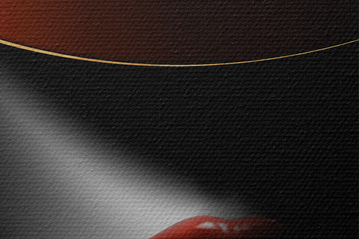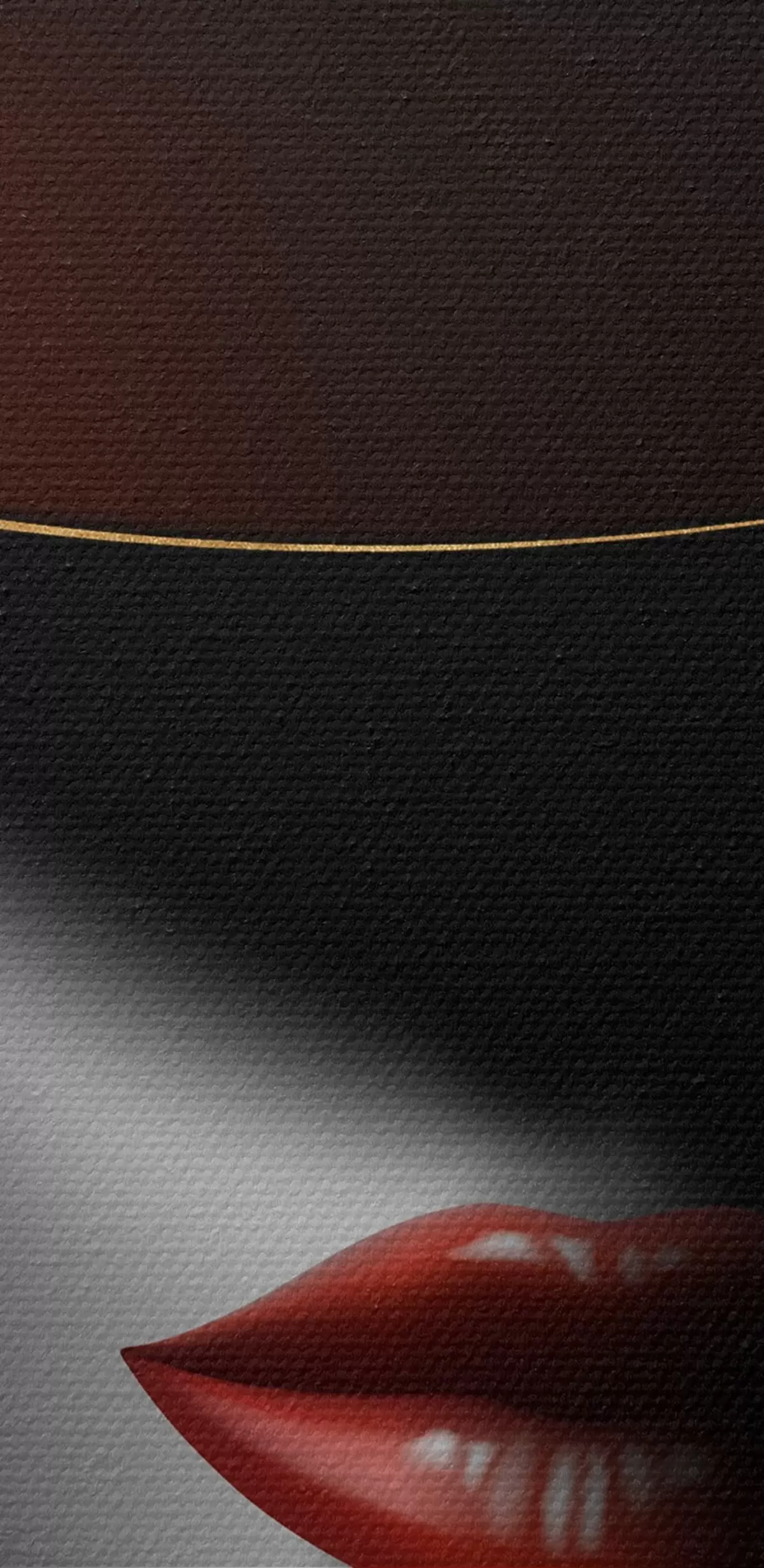 Кругла картина Губа, фотографія зі спалахом і капелюх r03483