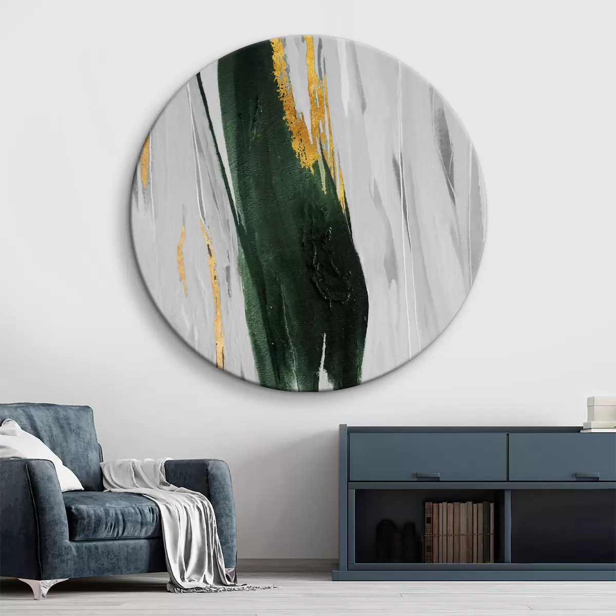 Кругла картина Мазки жовтої, білої та зеленої фарби Nr r03993