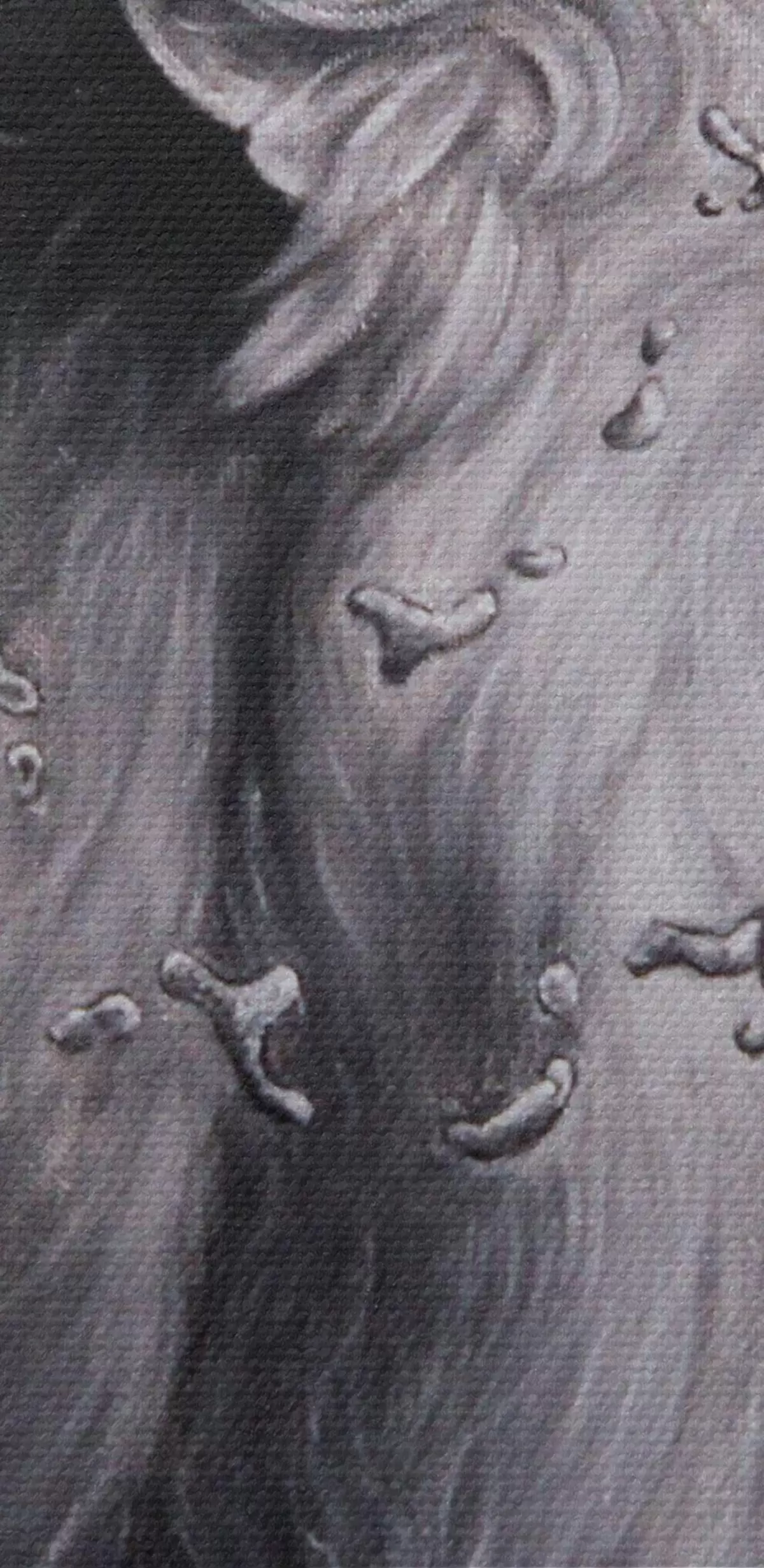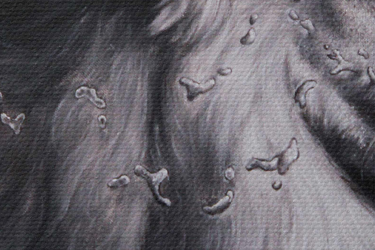 Картину можна акуратно протерти сухою м'якою тканиною або губкою, не рекомендується використовувати вологі засоби. Використання вологої губки допускається тільки в тому випадку, якщо картина була покрита лаком.