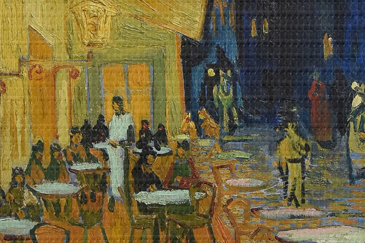 Тонке переплетення ниток на цьому полотні нагадує поверхню полотен професійних художників.