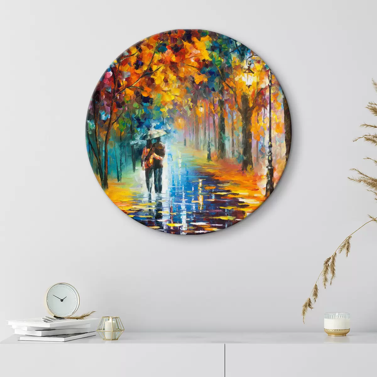 Кругла картина Пара під парасолькою, осінь r15186
