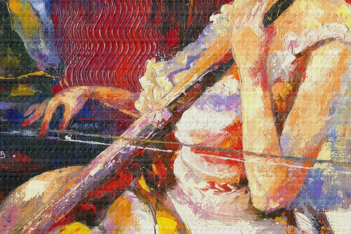 Тонке переплетення ниток на цьому полотні нагадує поверхню полотен професійних художників.