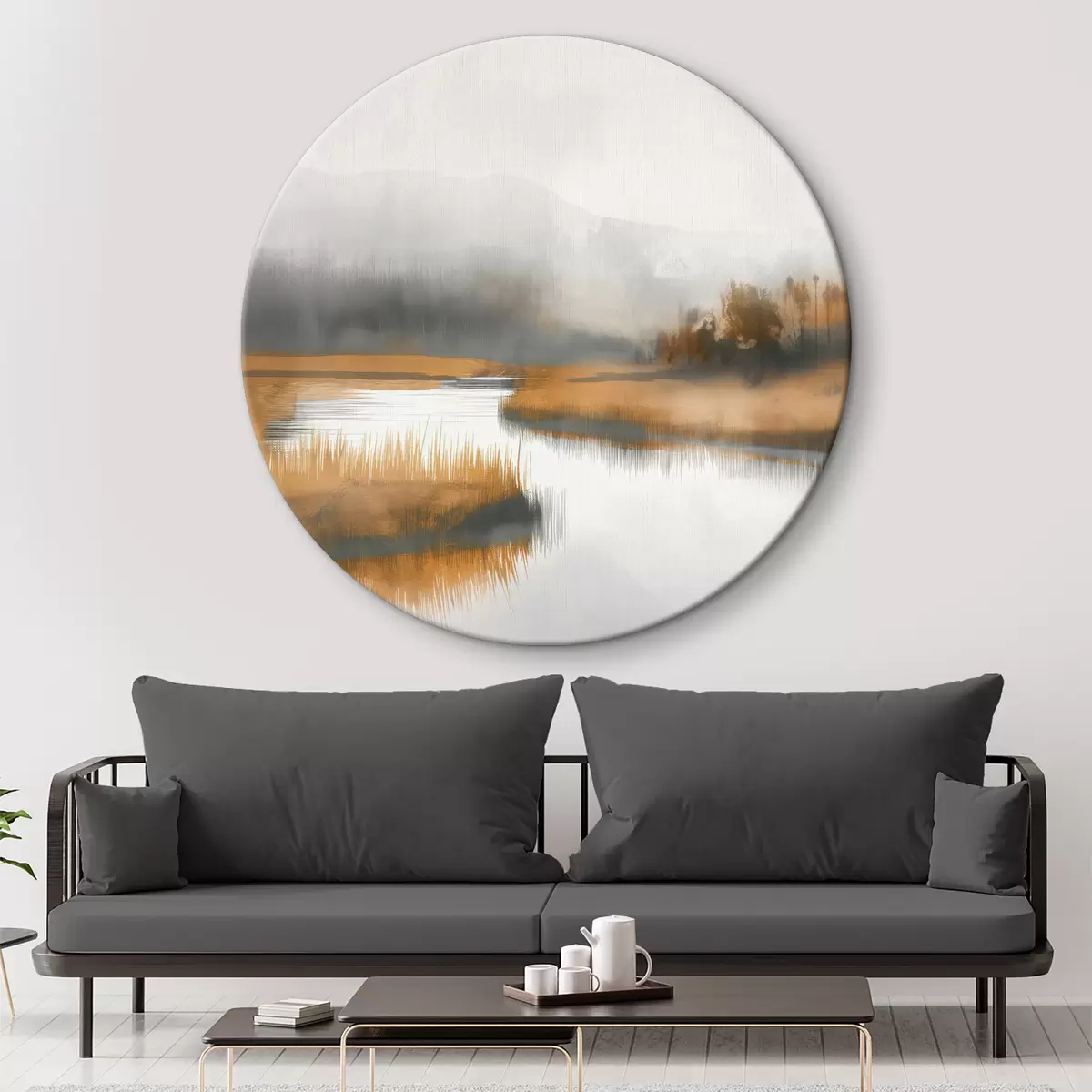 Кругла картина Абстракція природи в сіро-помаранчевих тонах r26132
