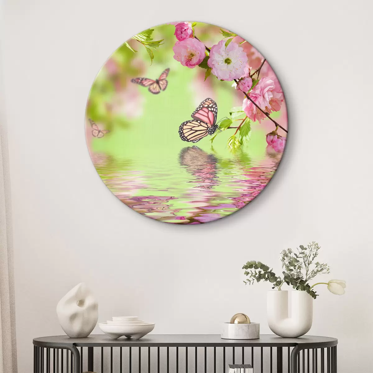 Кругла картина Запилювач, квітка і метелик Nr r27029