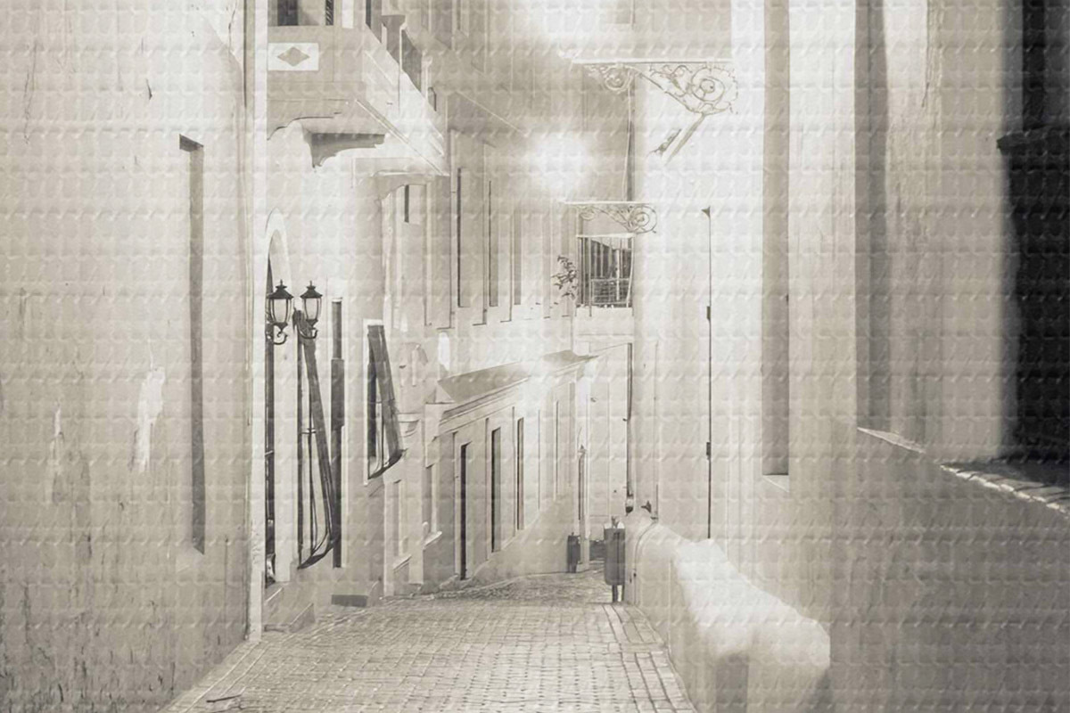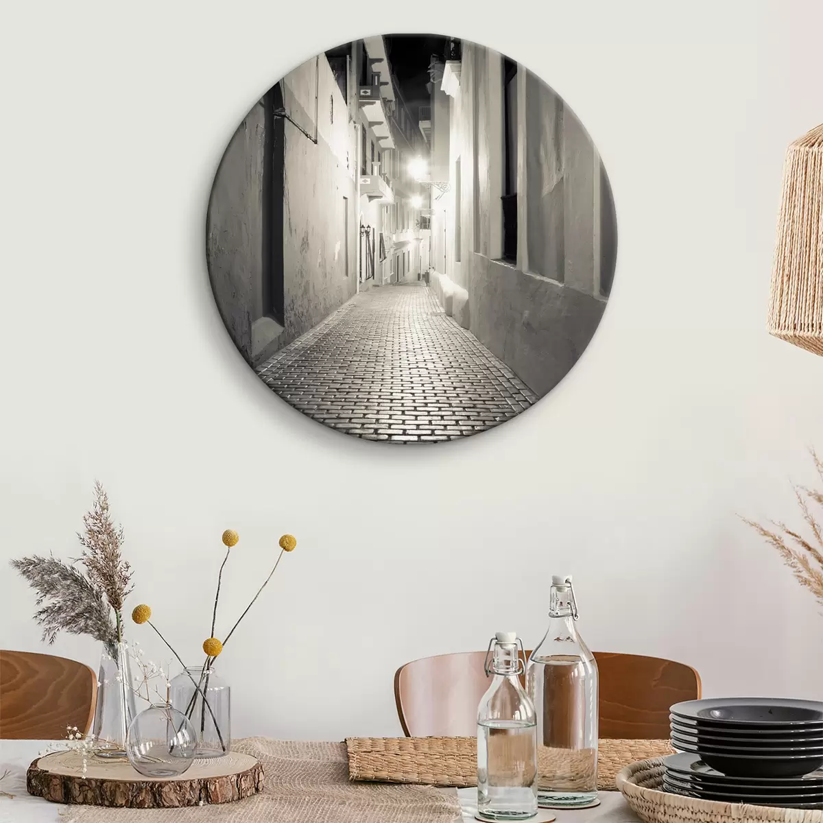 Кругла картина Будівля, дорожнє покриття та чорно-біле Nr r30415