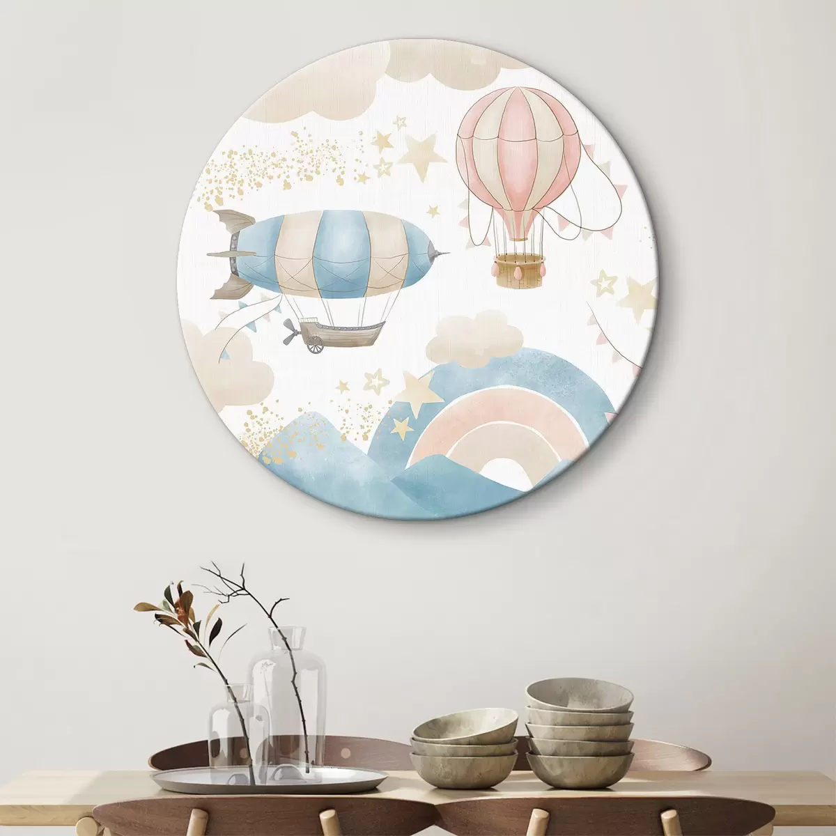 Кругла картина Повітряні кулі з хмарами та веселкою Nr r32431