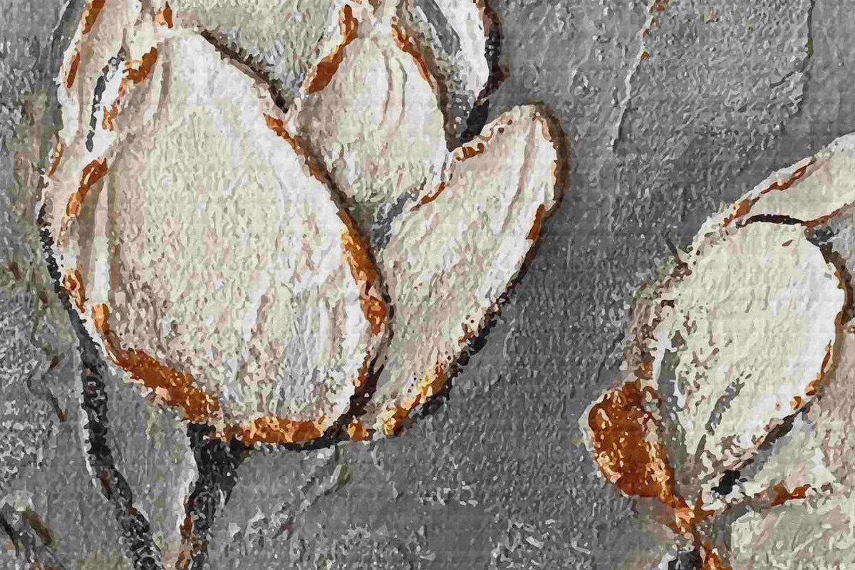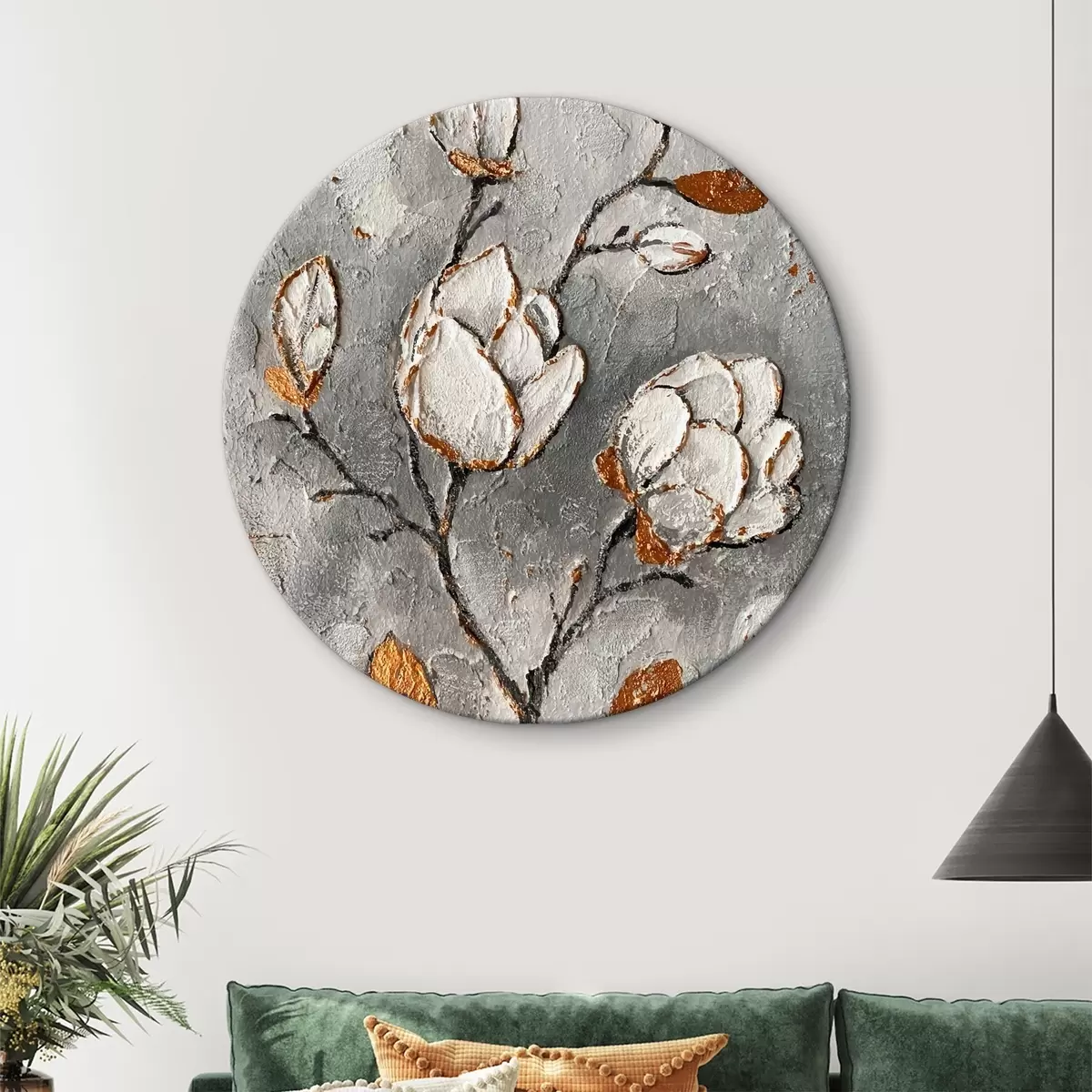 Кругла картина Квіти магнолії, малювання пензлем з деталями Nr r32513