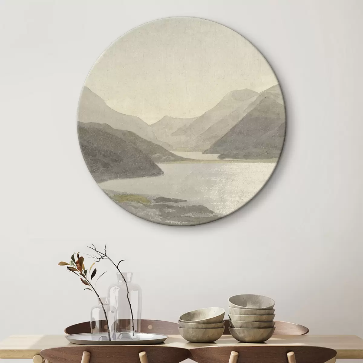 Кругла картина Вода, небо і гори Nr r32629