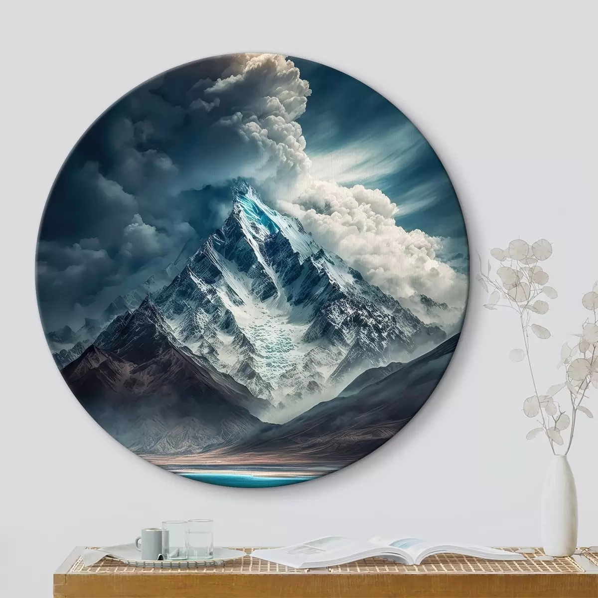 Кругла картина Гори, озеро і масивні хмари Nr r33082