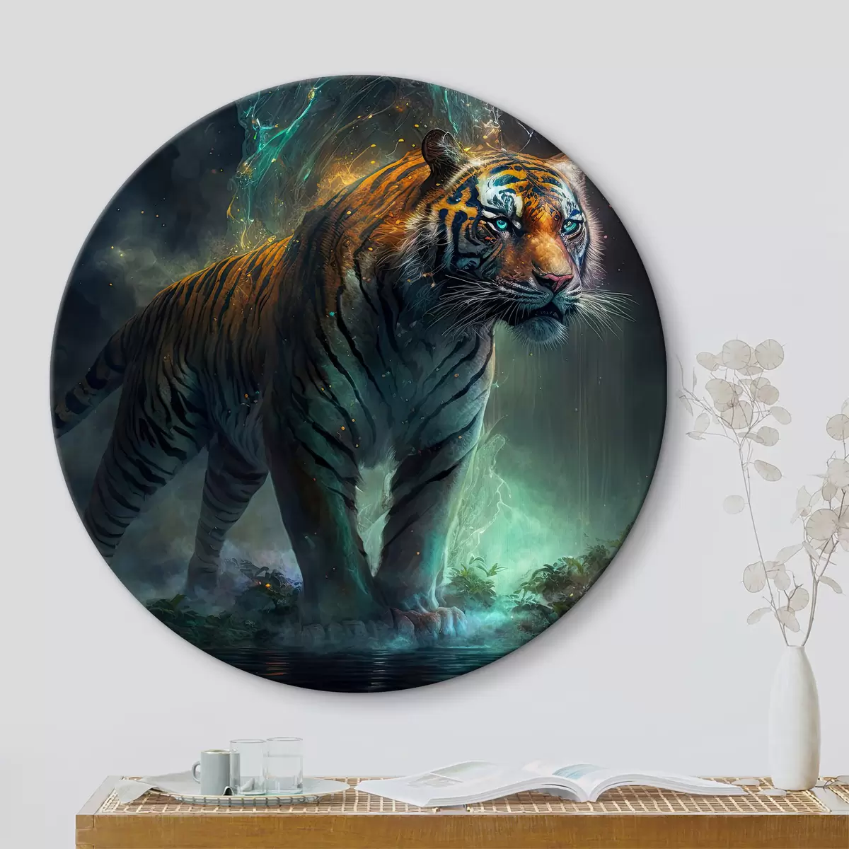 Кругла картина Неоновий тигр, намальований від руки Nr r33919