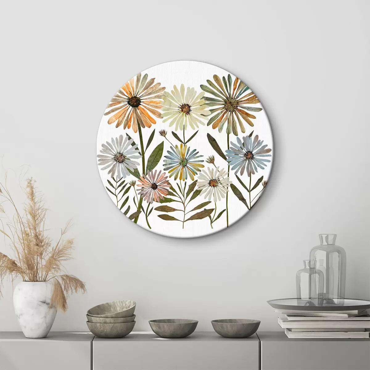 Кругла картина різнокольорові ромашки Nr r34120