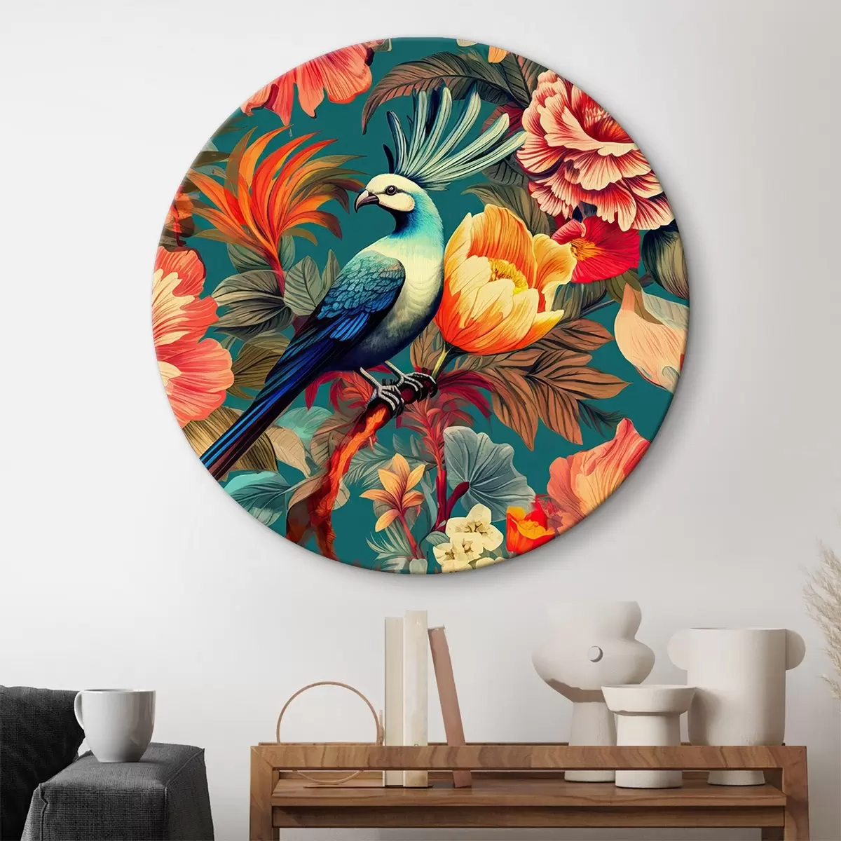 Кругла картина Тропічний естетичний візерунок з папугами Nr r34489