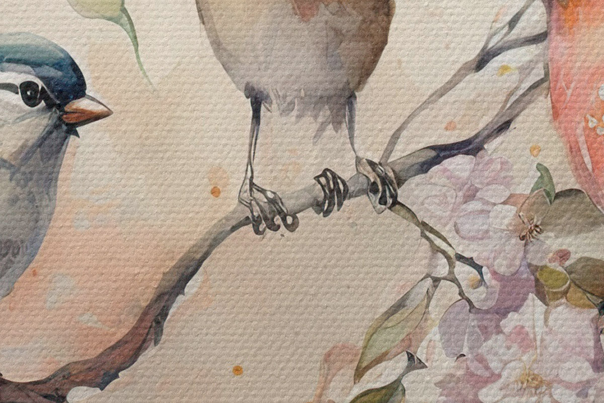 Кругла картина Птах, дзьоб і гілочка Nr r34490