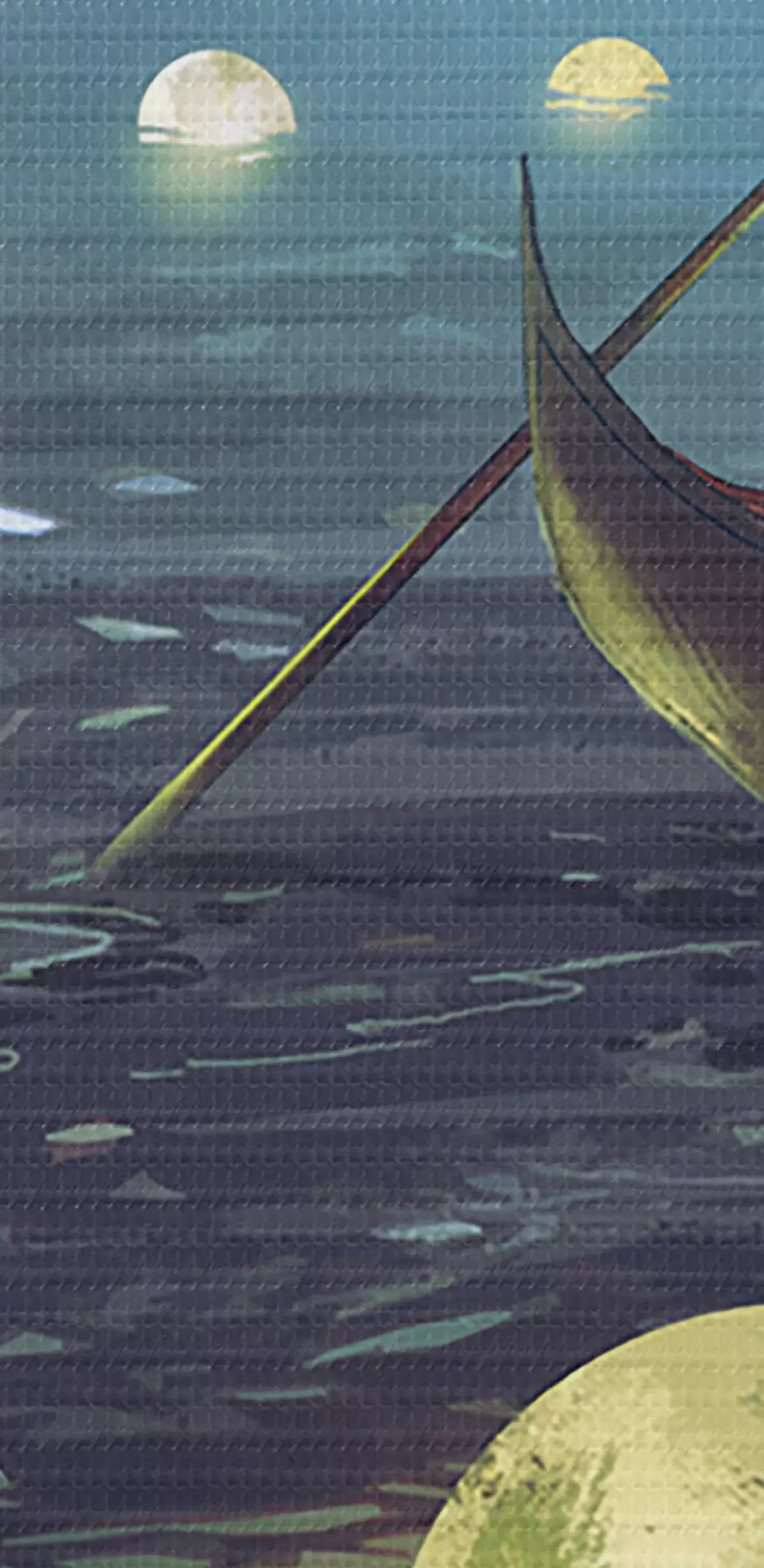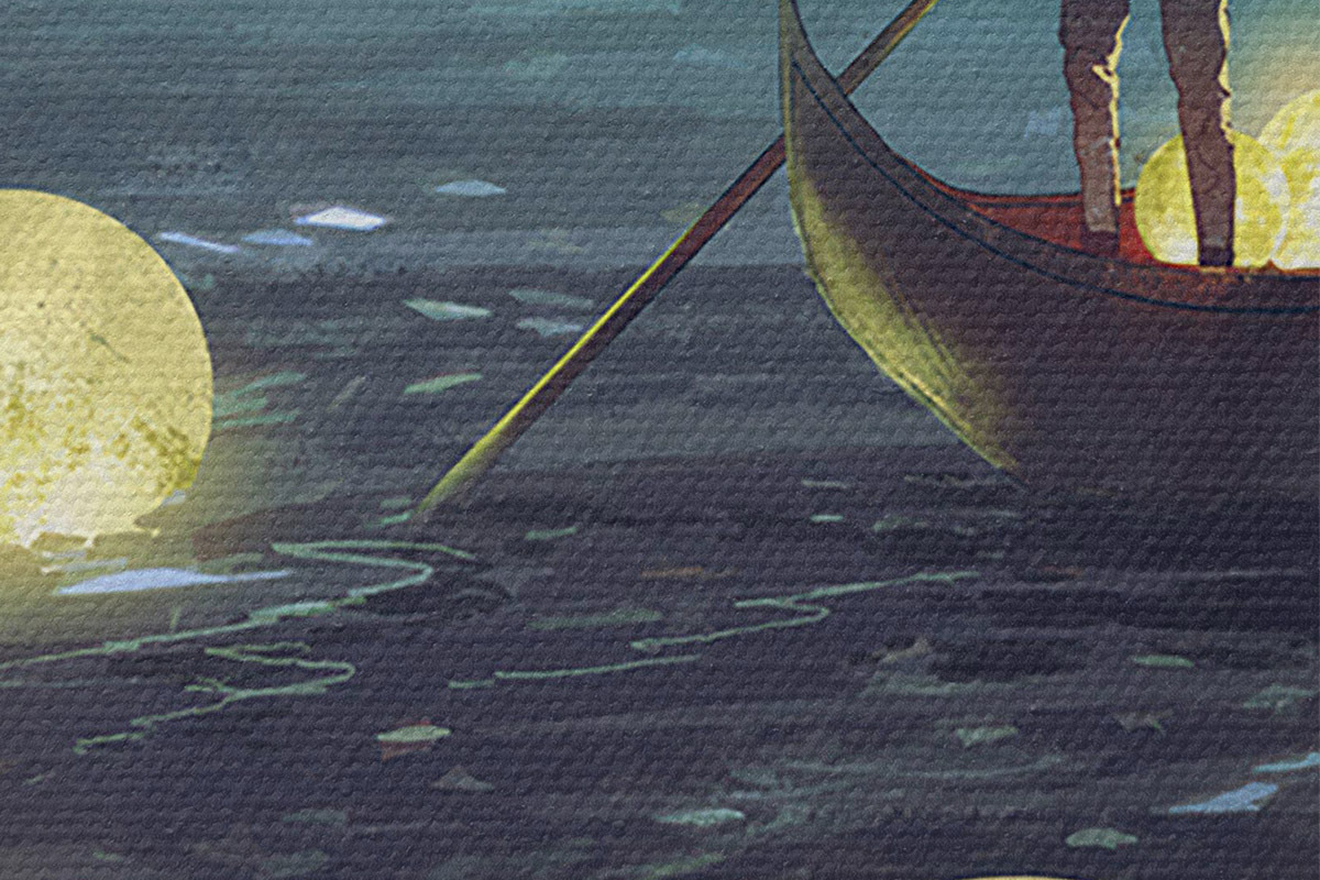 Кругла картина Чоловік у човні на тлі сяючого місяця Nr r34544