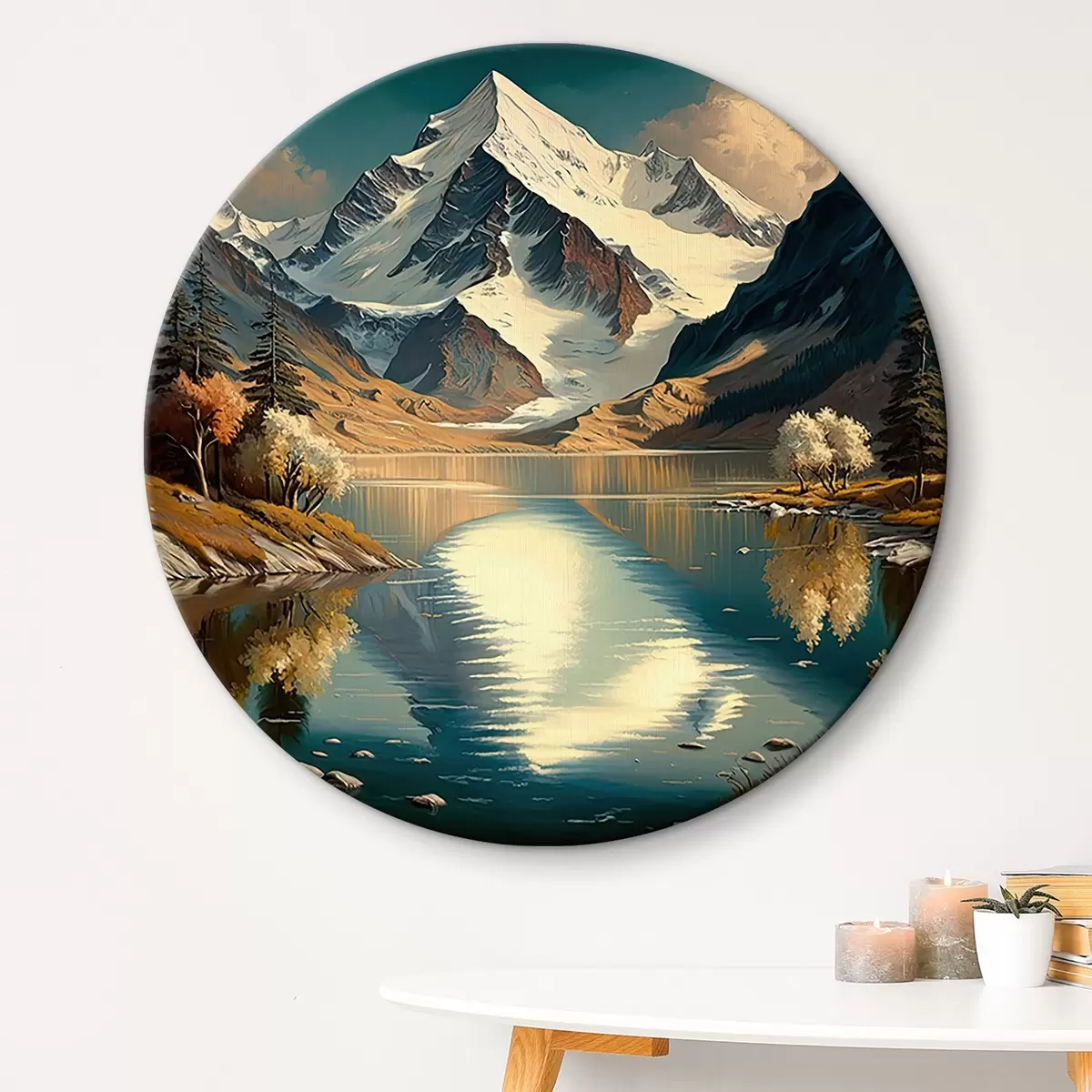 Кругла картина Гірський олійний живопис з деревами та снігом Nr r34631