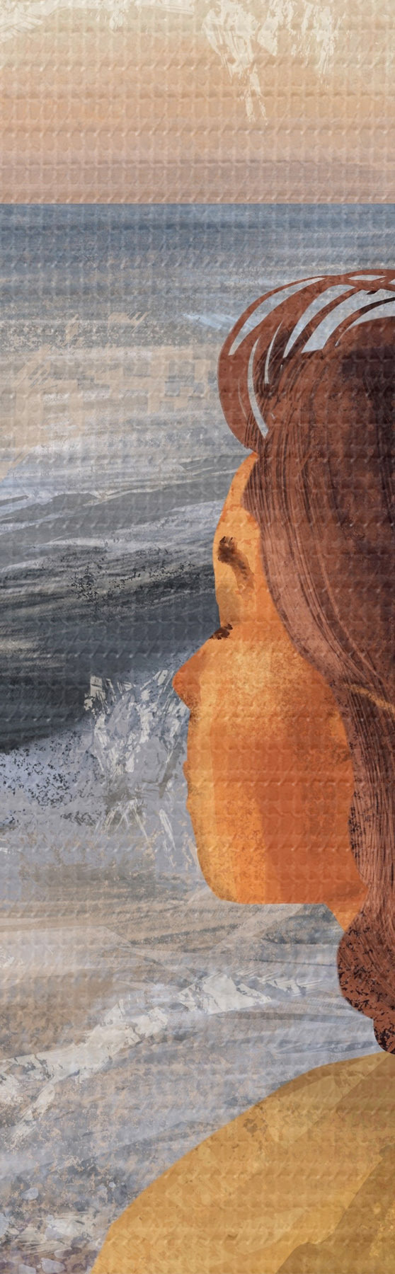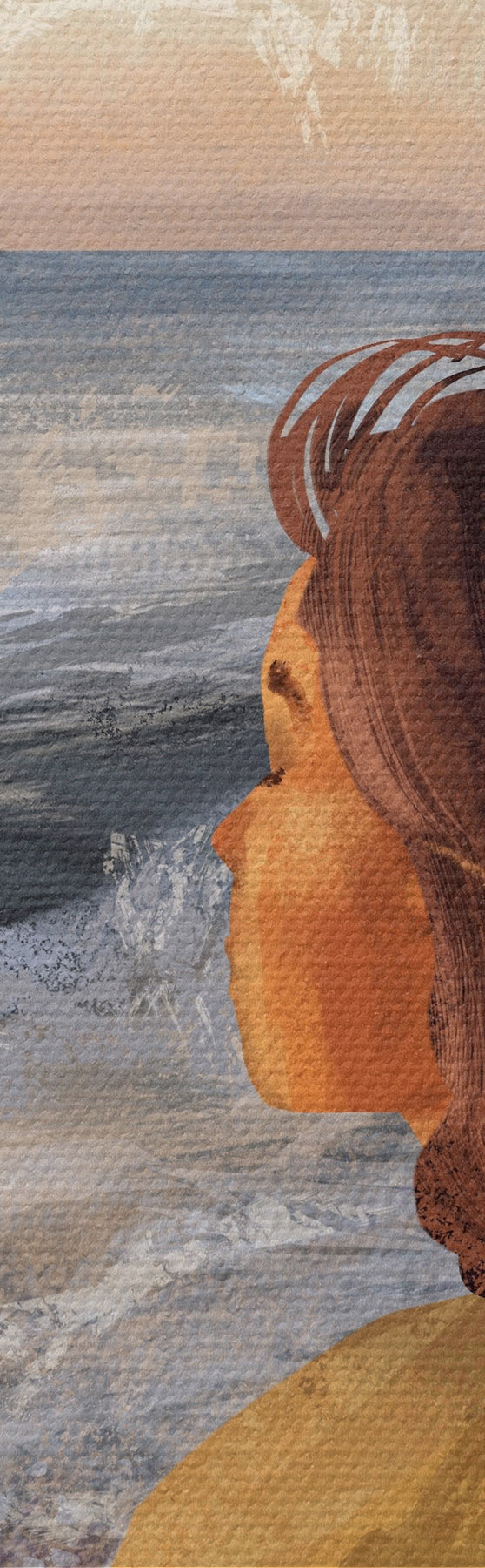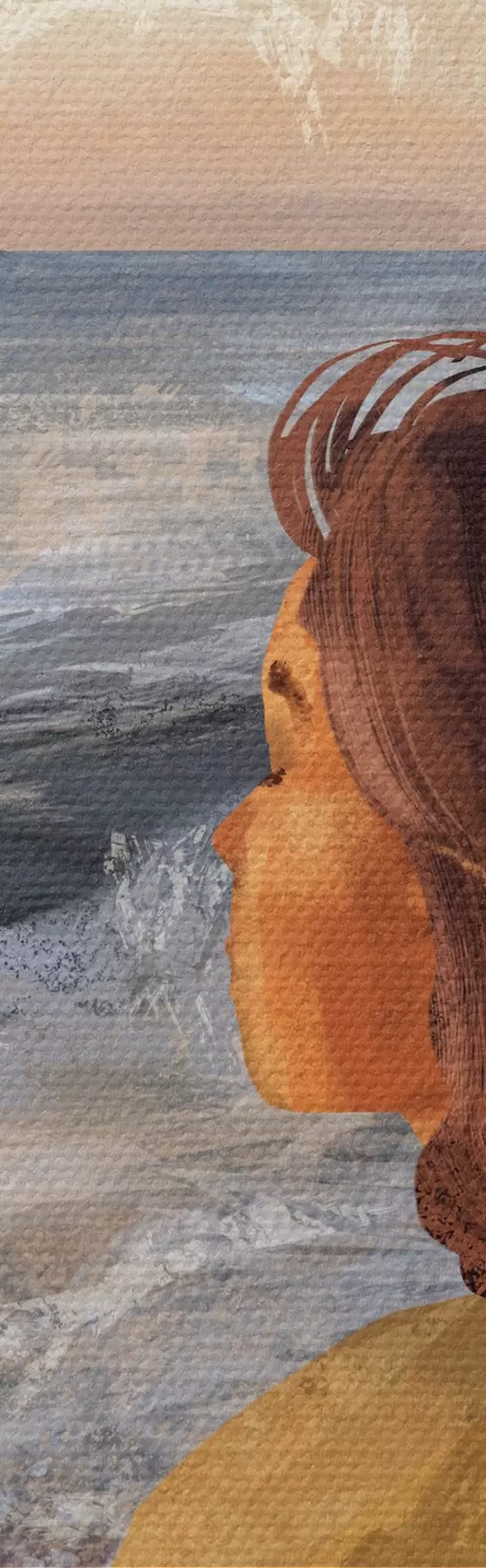Кругла картина Жінка на березі моря, споглядає хвилі r35317