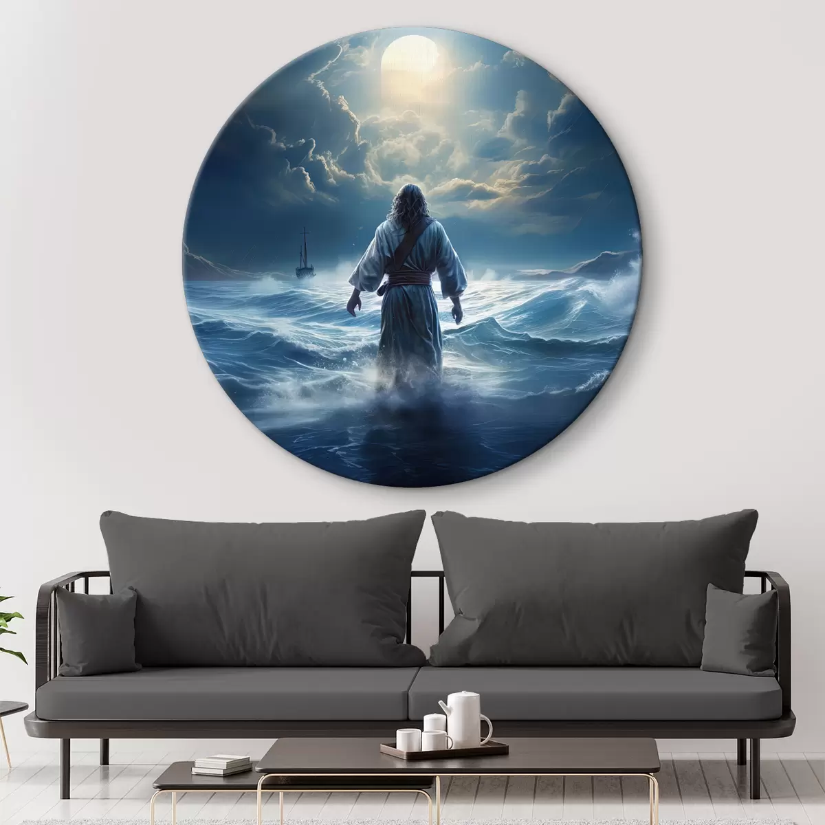 Кругла картина Чоловік дивиться на повний місяць вночі Nr r35357