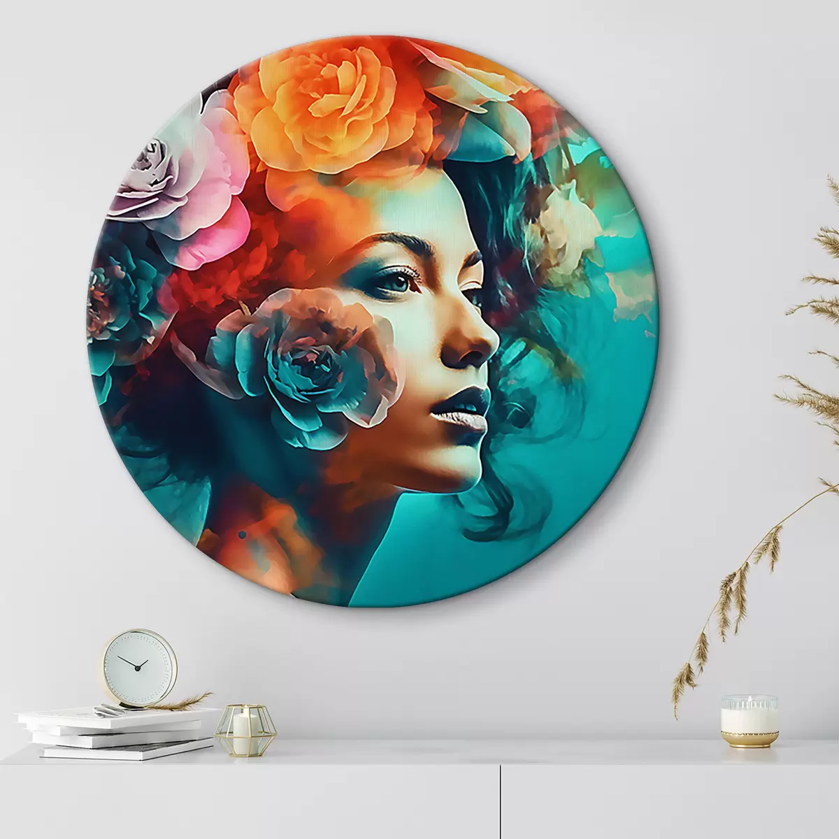 Кругла картина Мила жінка з квітами Nr r35366