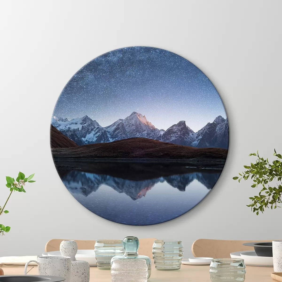 Кругла картина Нічний пейзаж з гірським озером і зоряним небом Nr r35372