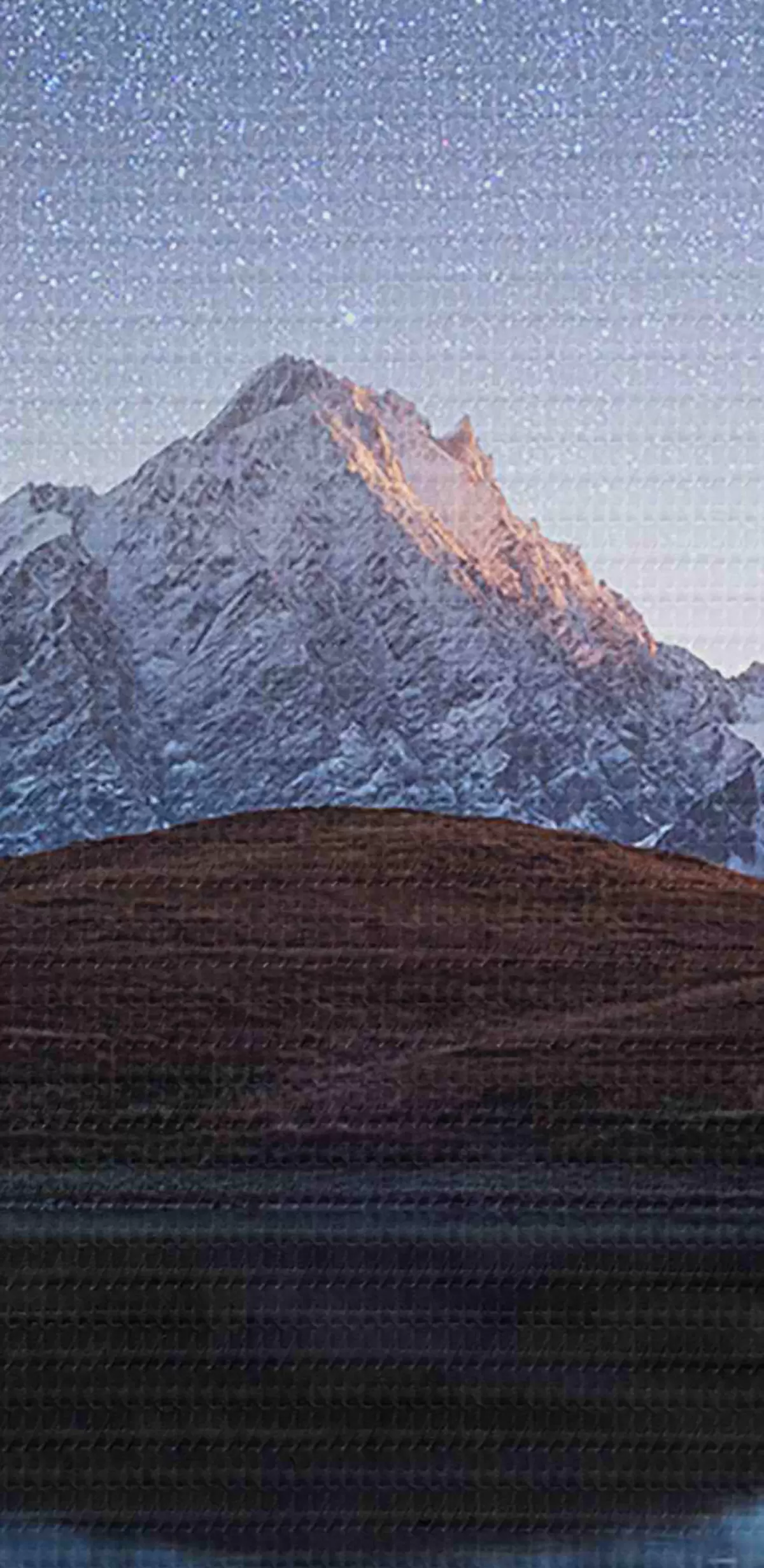Кругла картина Нічний пейзаж з гірським озером і зоряним небом r35372