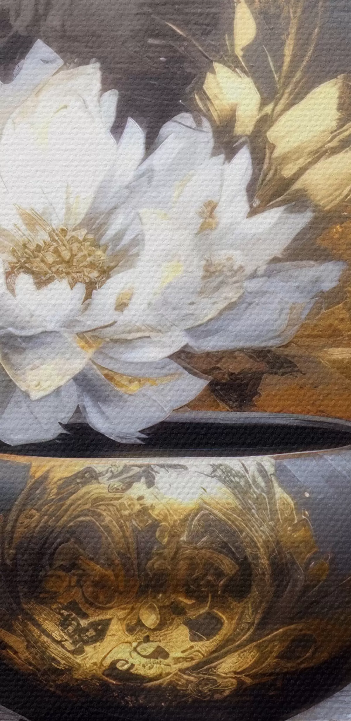 Кругла картина Велика ваза з величезною білою квіткою Nr r35388