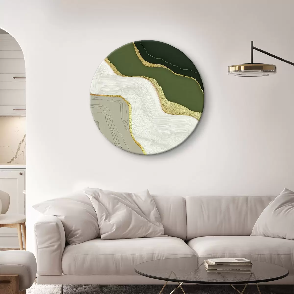 Кругла картина Абстрактний олійний живопис, виконаний чорними, білими, зеленими та сірими фарбами Nr r35427