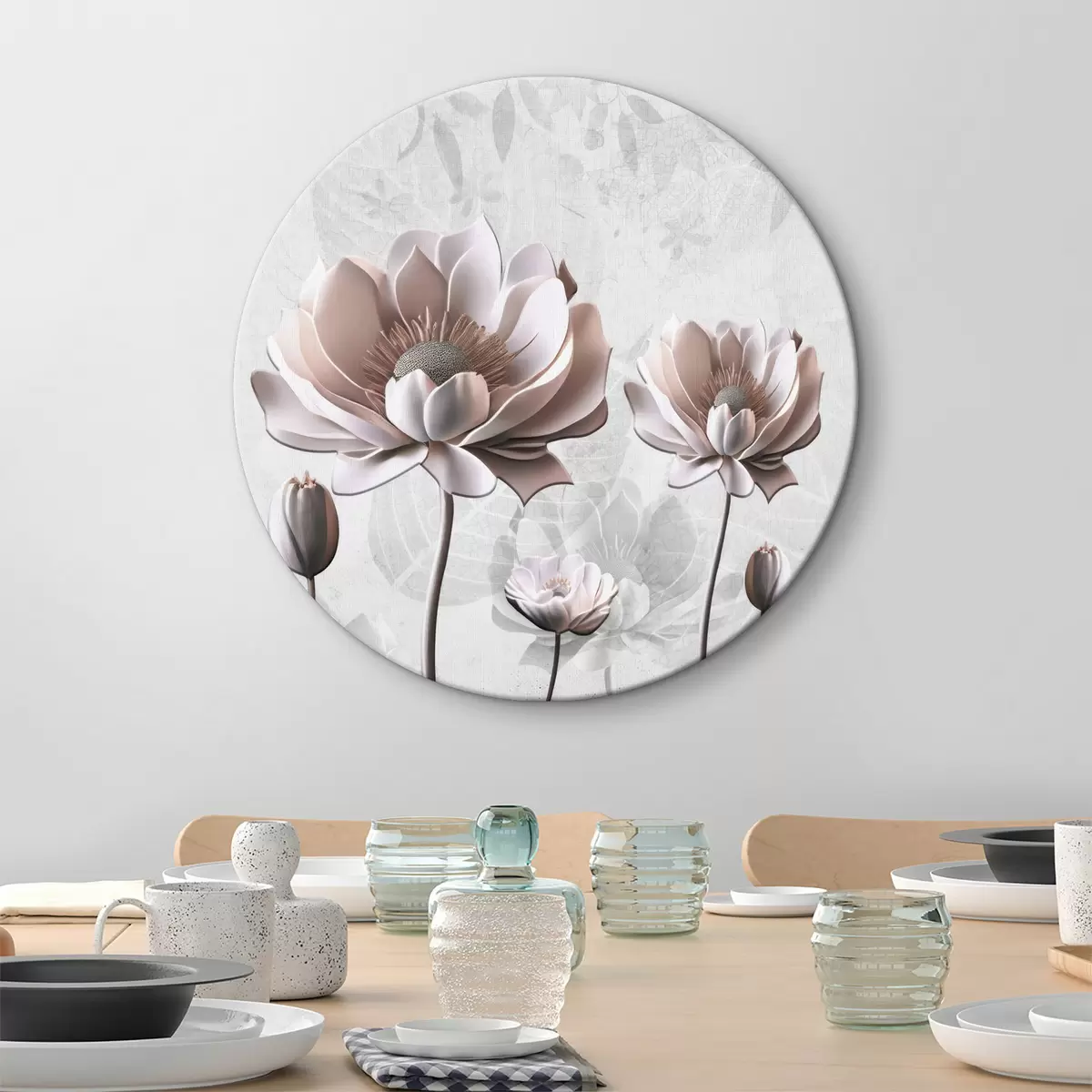 Кругла картина Білі квіти на білому тлі Nr r35736