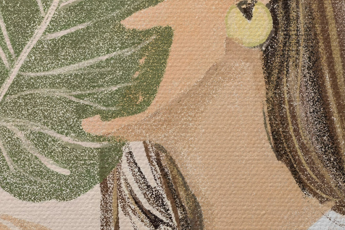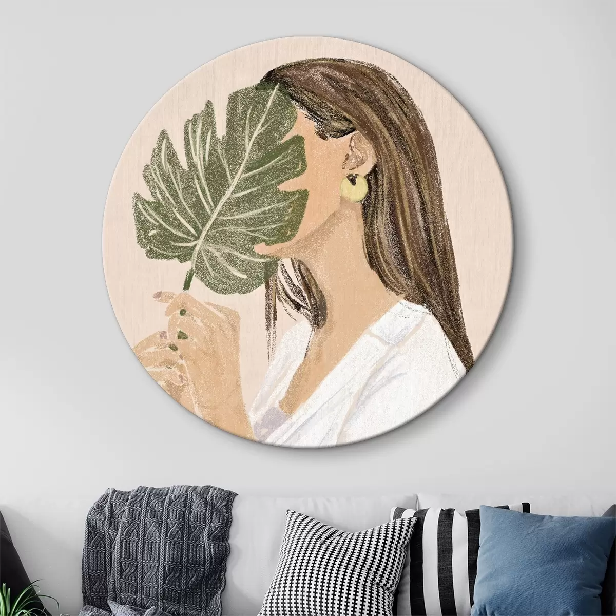 Кругла картина Жінка з тропічним листям і природною елегантністю Nr r35800