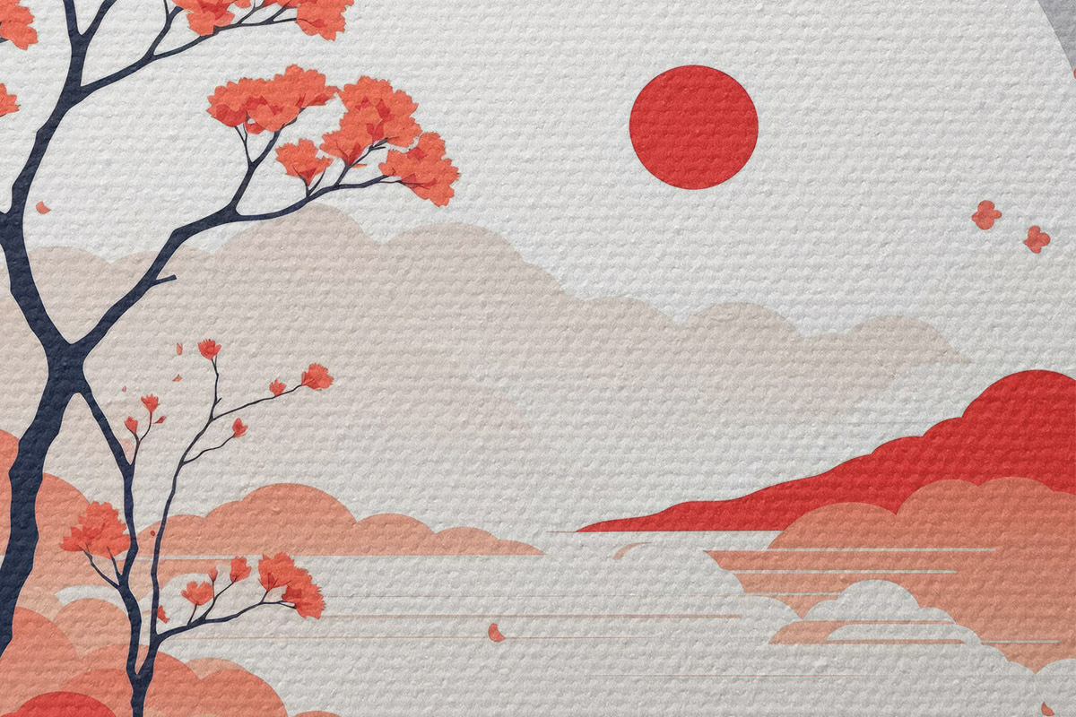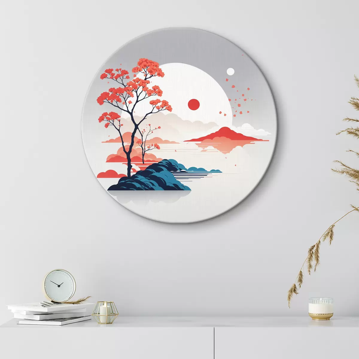 Кругла картина Цвітіння вишні на тлі сходу сонця Nr r35820