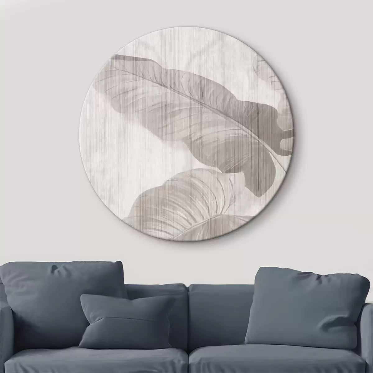 Кругла картина Приглушене бананове листя в м'яких текстурах r35850