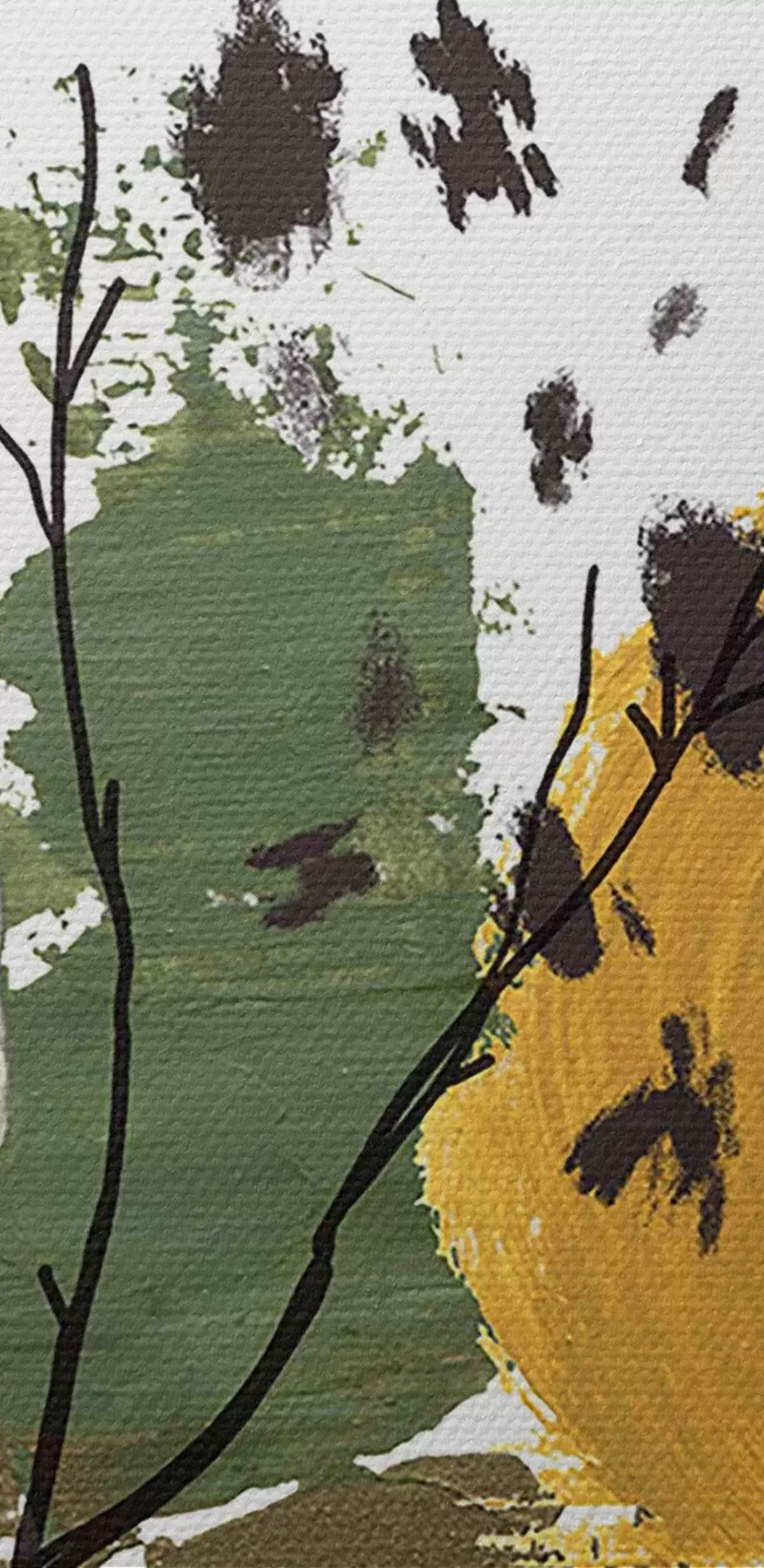 Кругла картина Акварельна осіння композиція з лінійних гілок, коричневих, жовтих і зелених плям Nr r35950