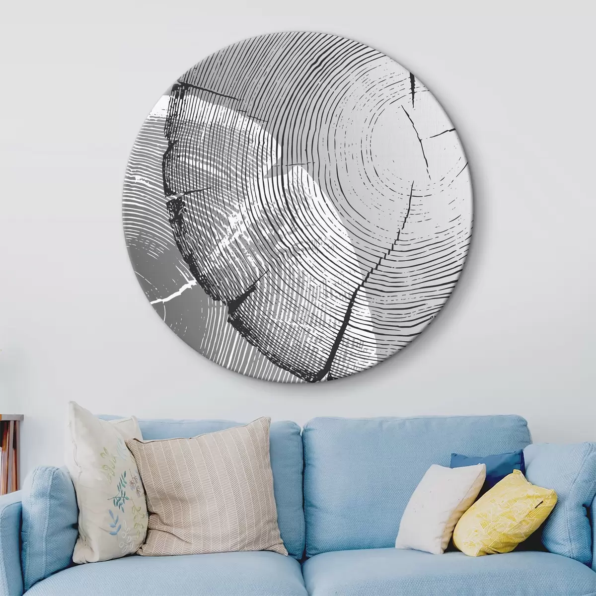 Кругла картина Чорно-білі кола, вирізані з дерева r35994