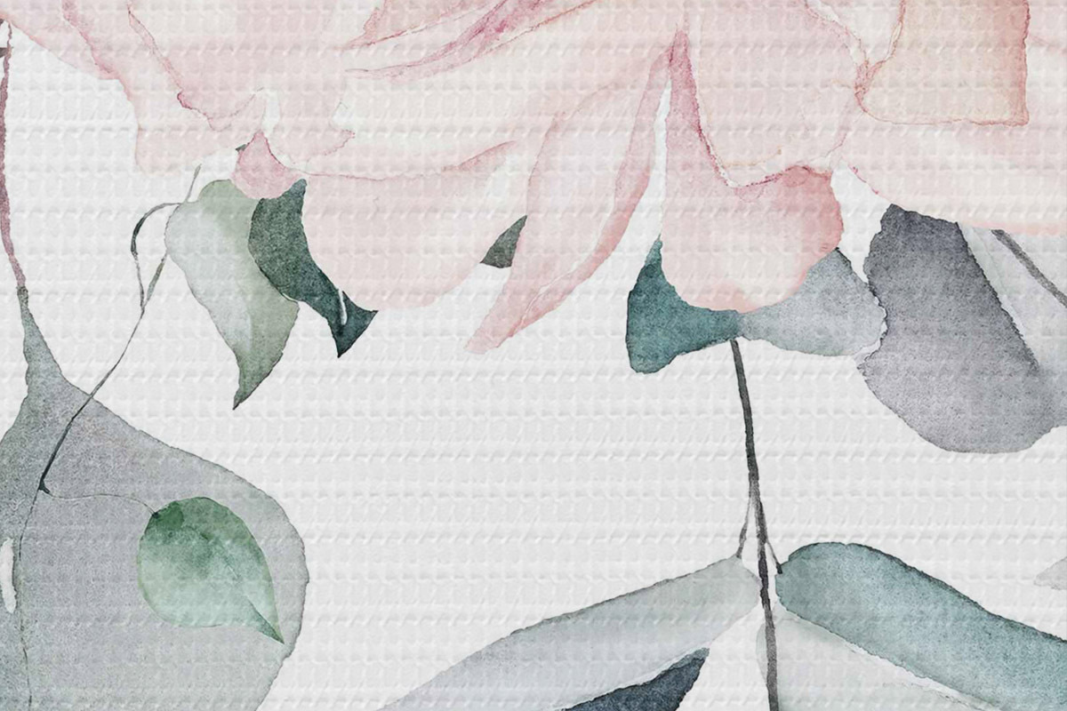 Кругла картина Рожева квітка акарелли на тлі звисаючого листя r36141