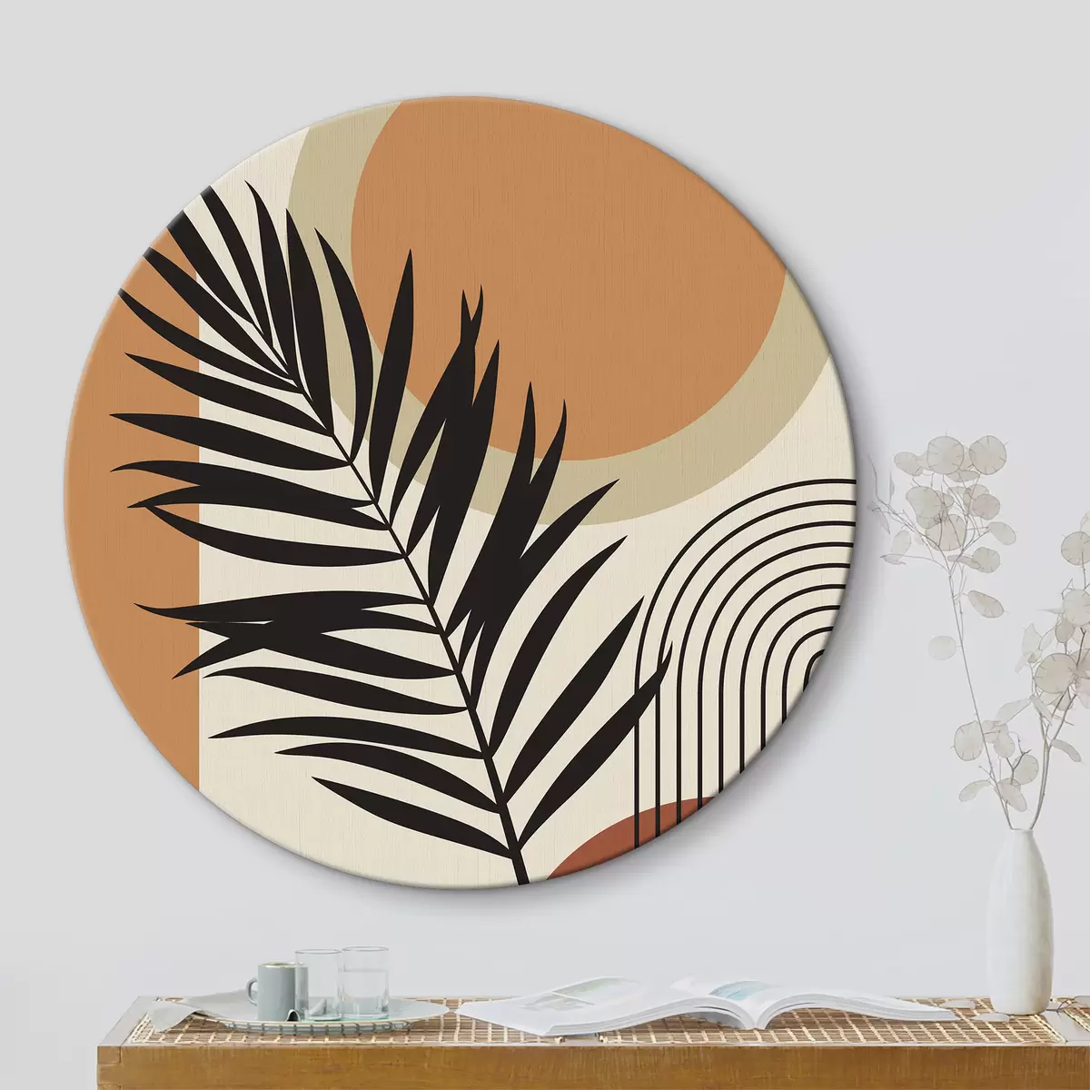 Кругла картина Пальмове листя на геометричному тлі Nr r36170
