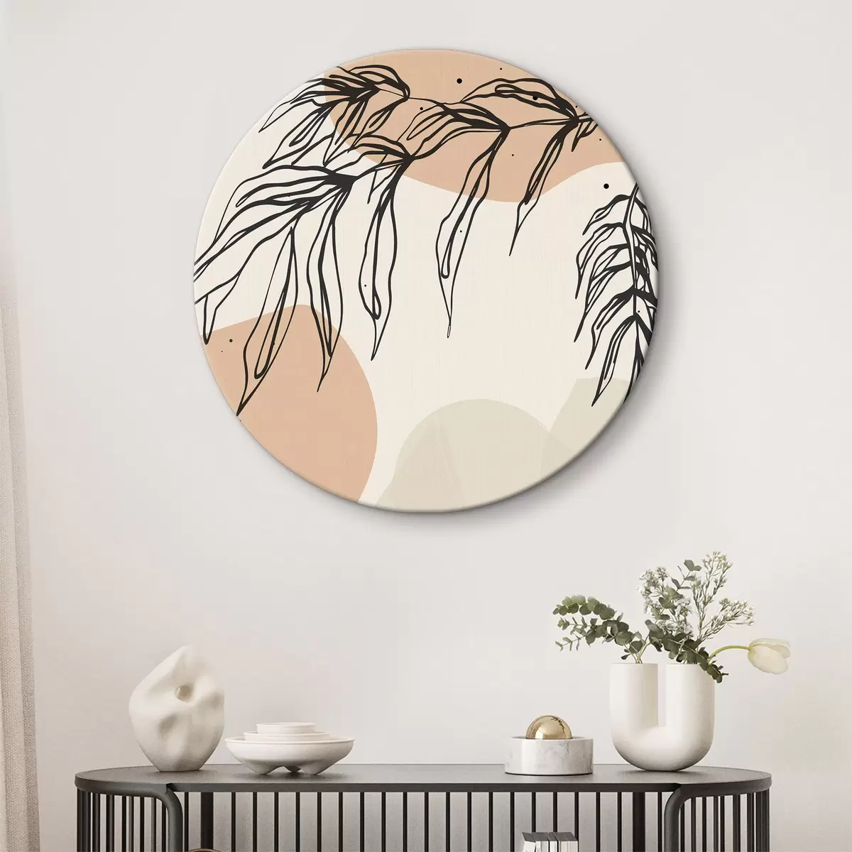 Кругла картина Абстрактне листя, лінії різної форми Nr r36186