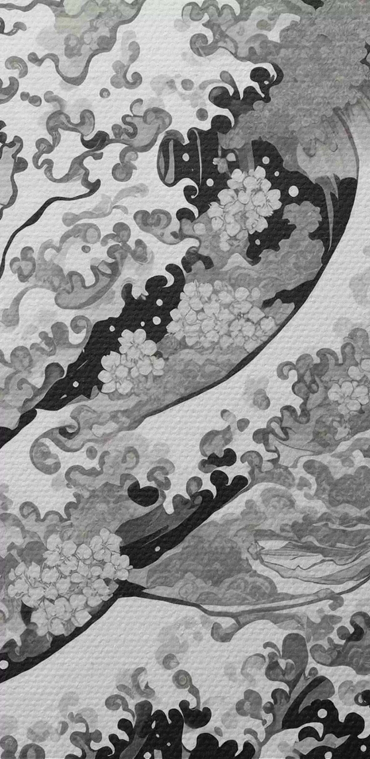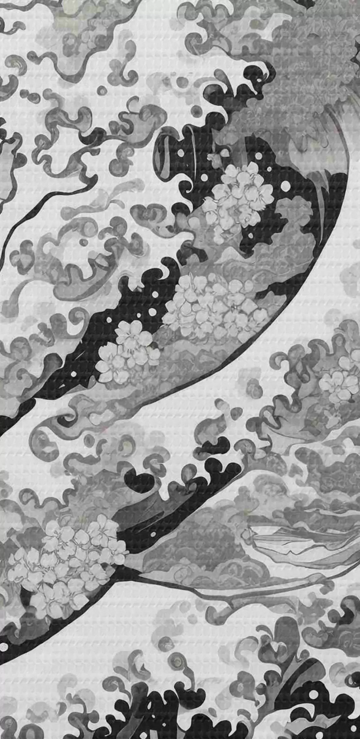 Кругла картина Цунамі в чорно-білих тонах. Nr r36234