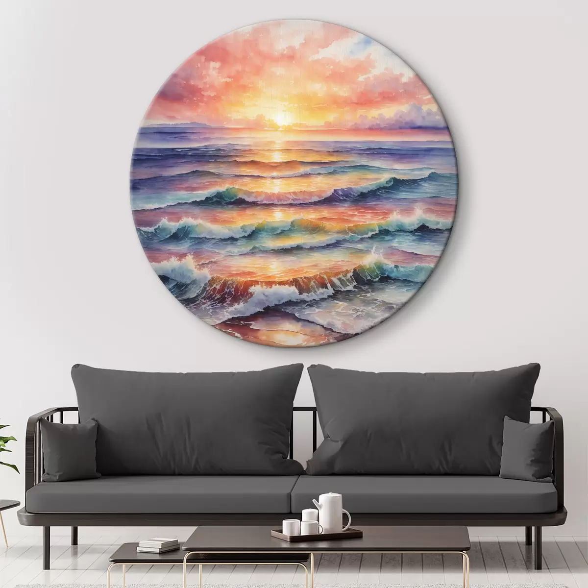 Кругла картина Вид на захід сонця з пляжу в акварелі Nr r36241