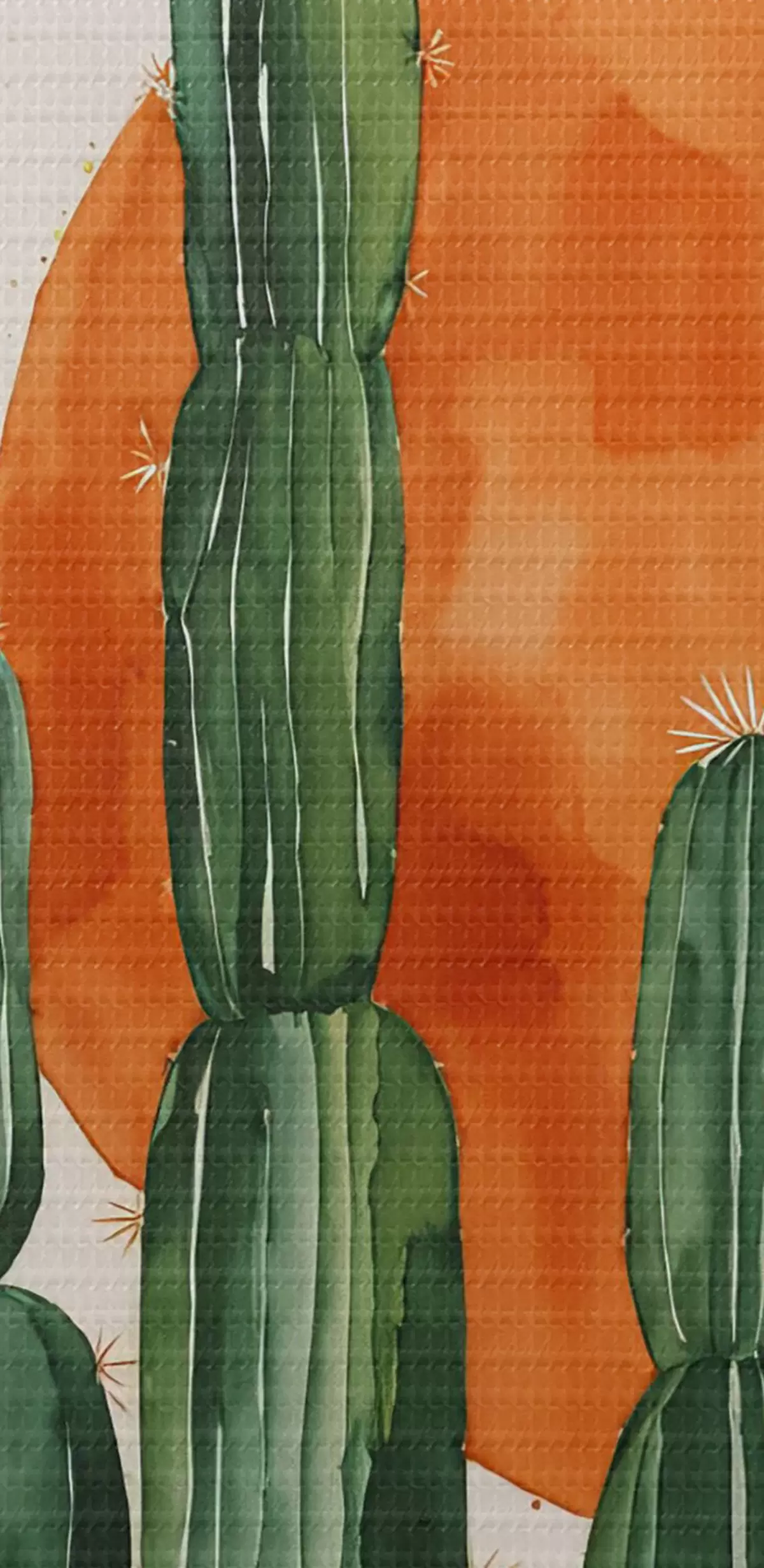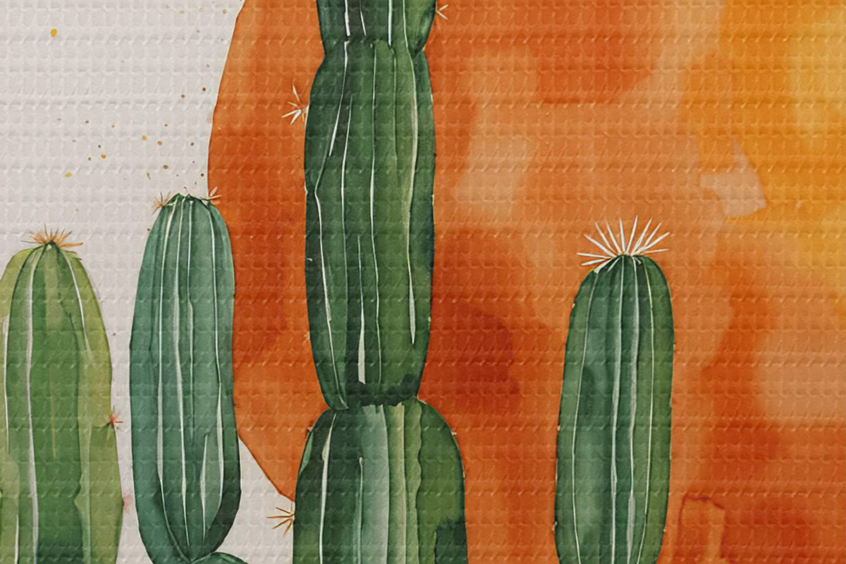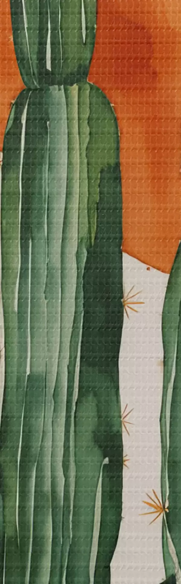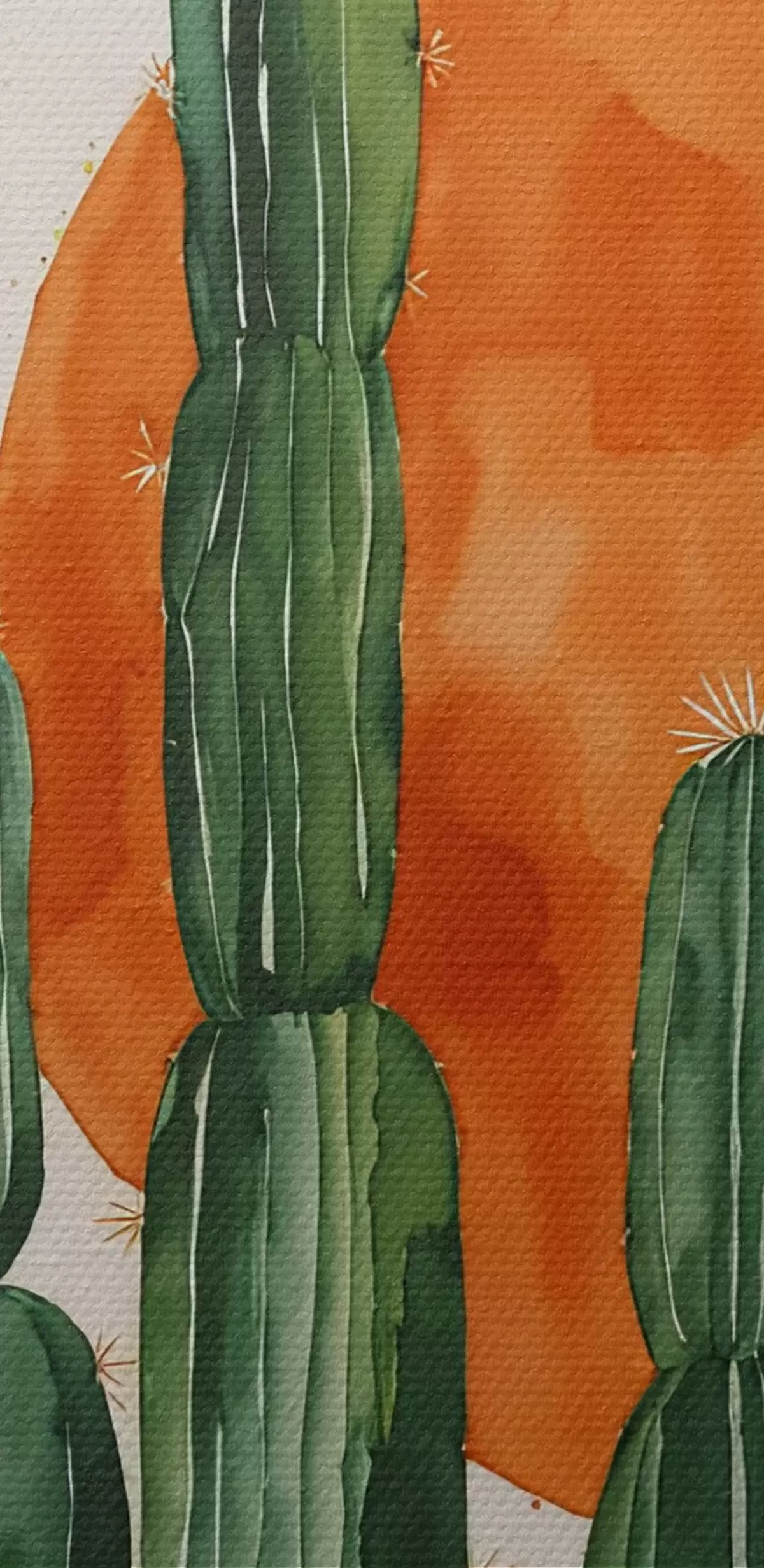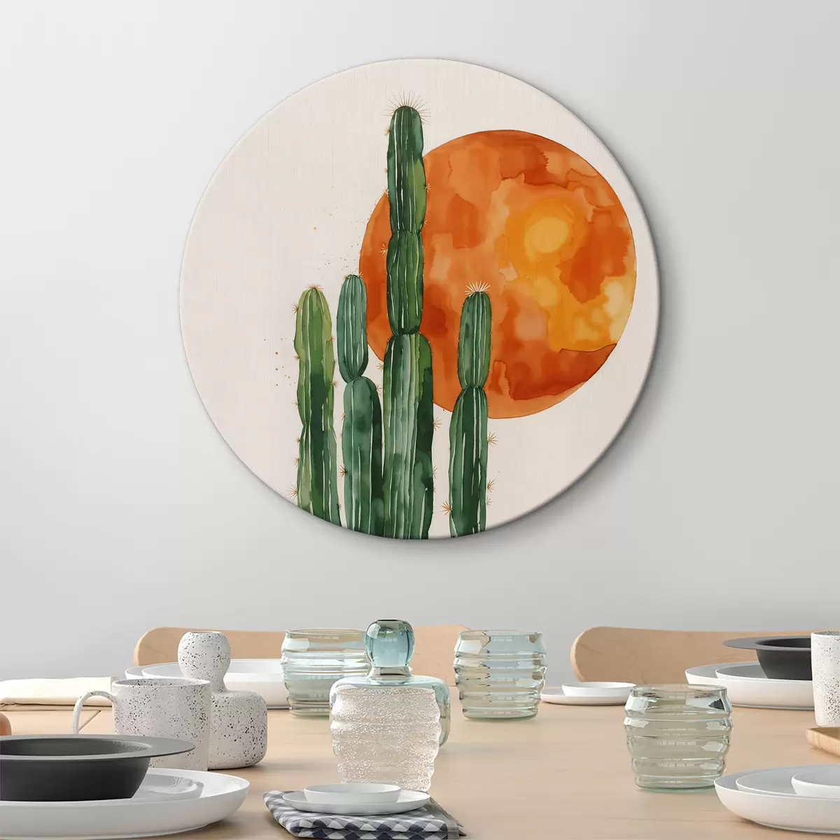 Кругла картина Кактус в пустелі на тлі сонця в акварелі Nr r36269