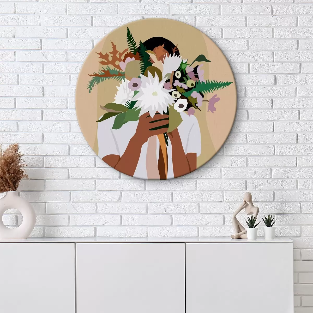 Кругла картина Дівчина з букетом квітів в абстрактному стилі бохо Nr r36367