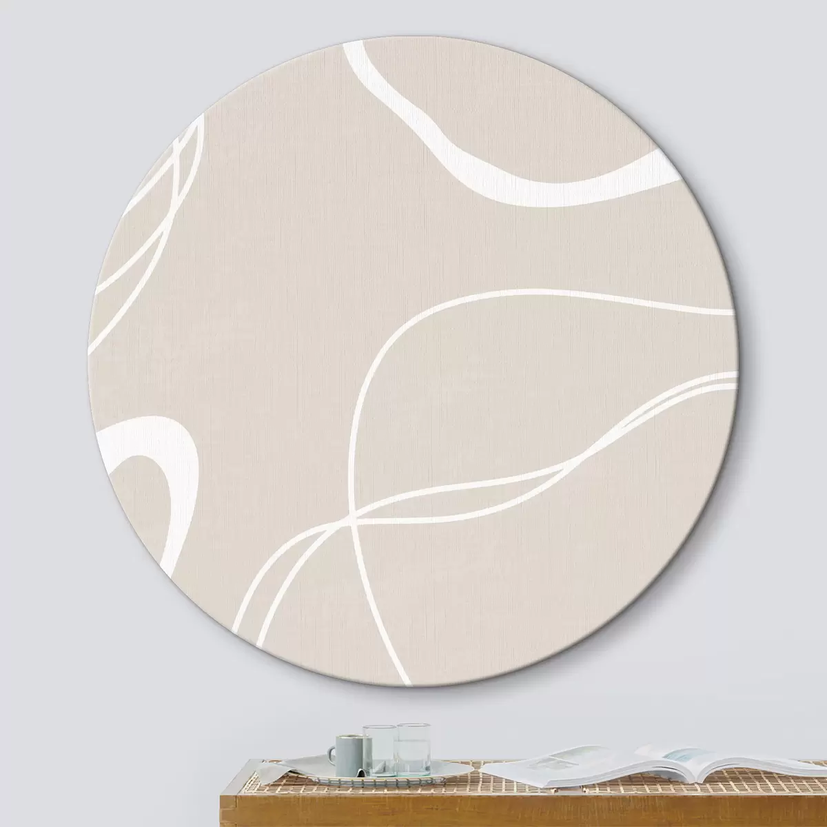 Кругла картина Абстракція на бежевому тлі Nr r36489