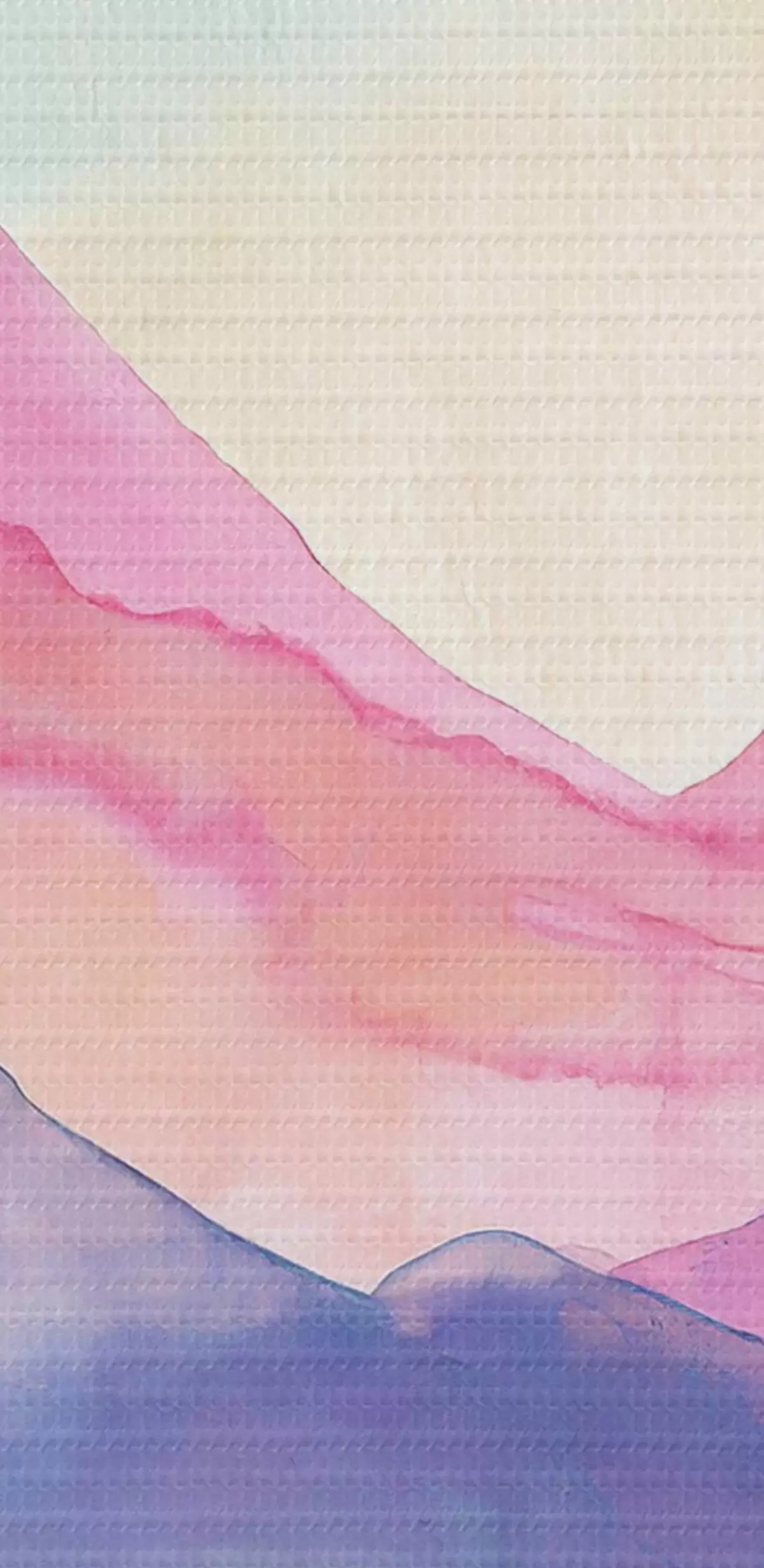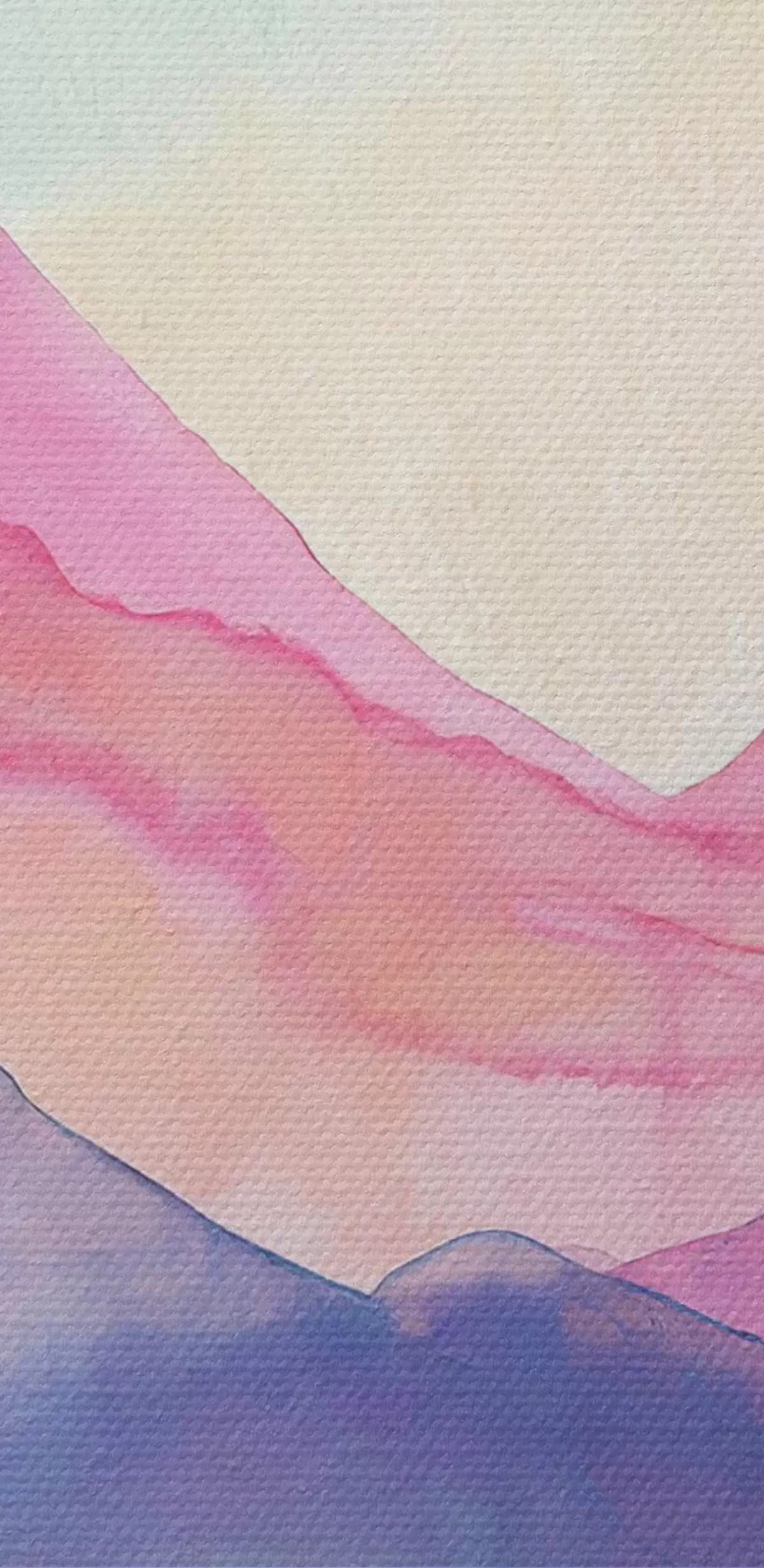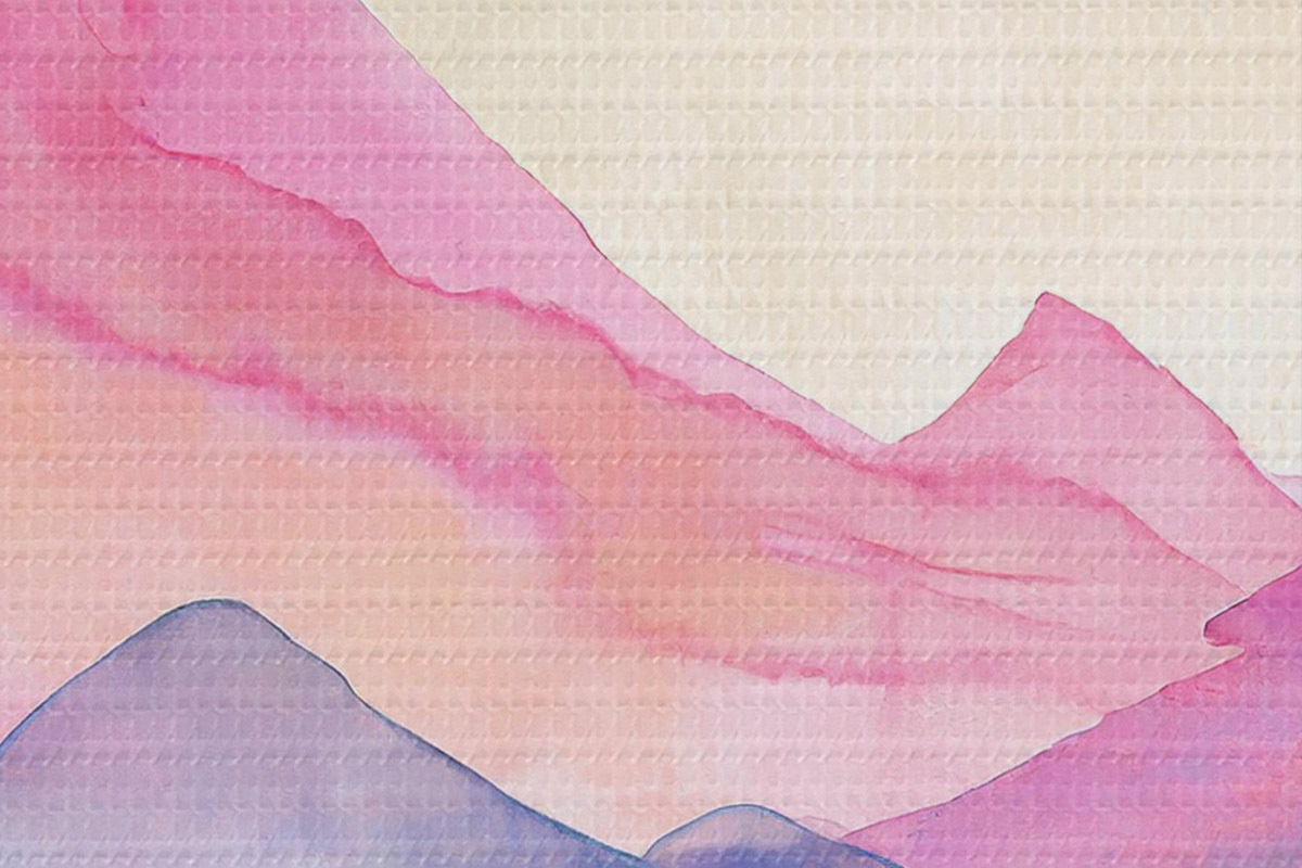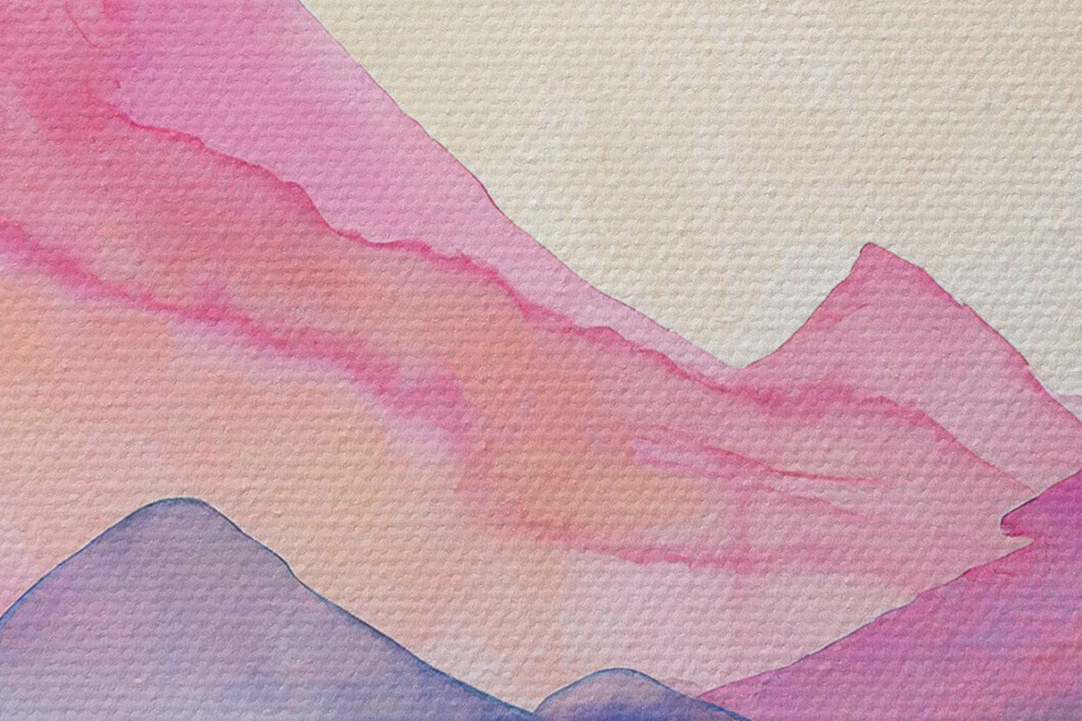 Кругла картина Акварель Гірський пейзаж, Схід сонця, м'які фіолетові, рожеві та блакитні кольори Nr r36496