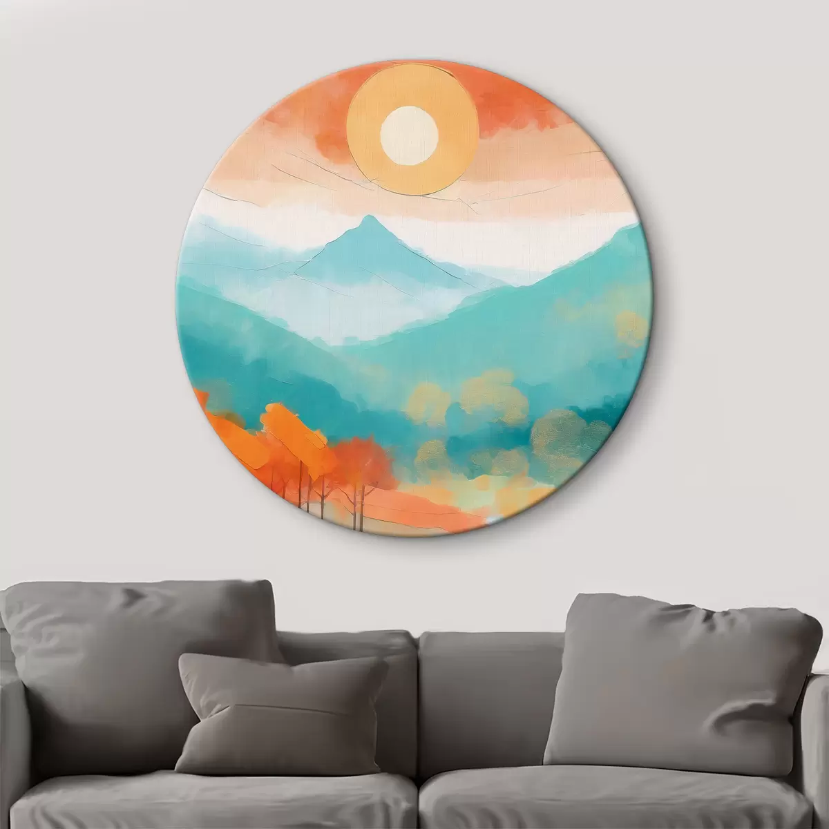 Кругла картина Осіннє тепло в безтурботному гірському пейзажі r36506