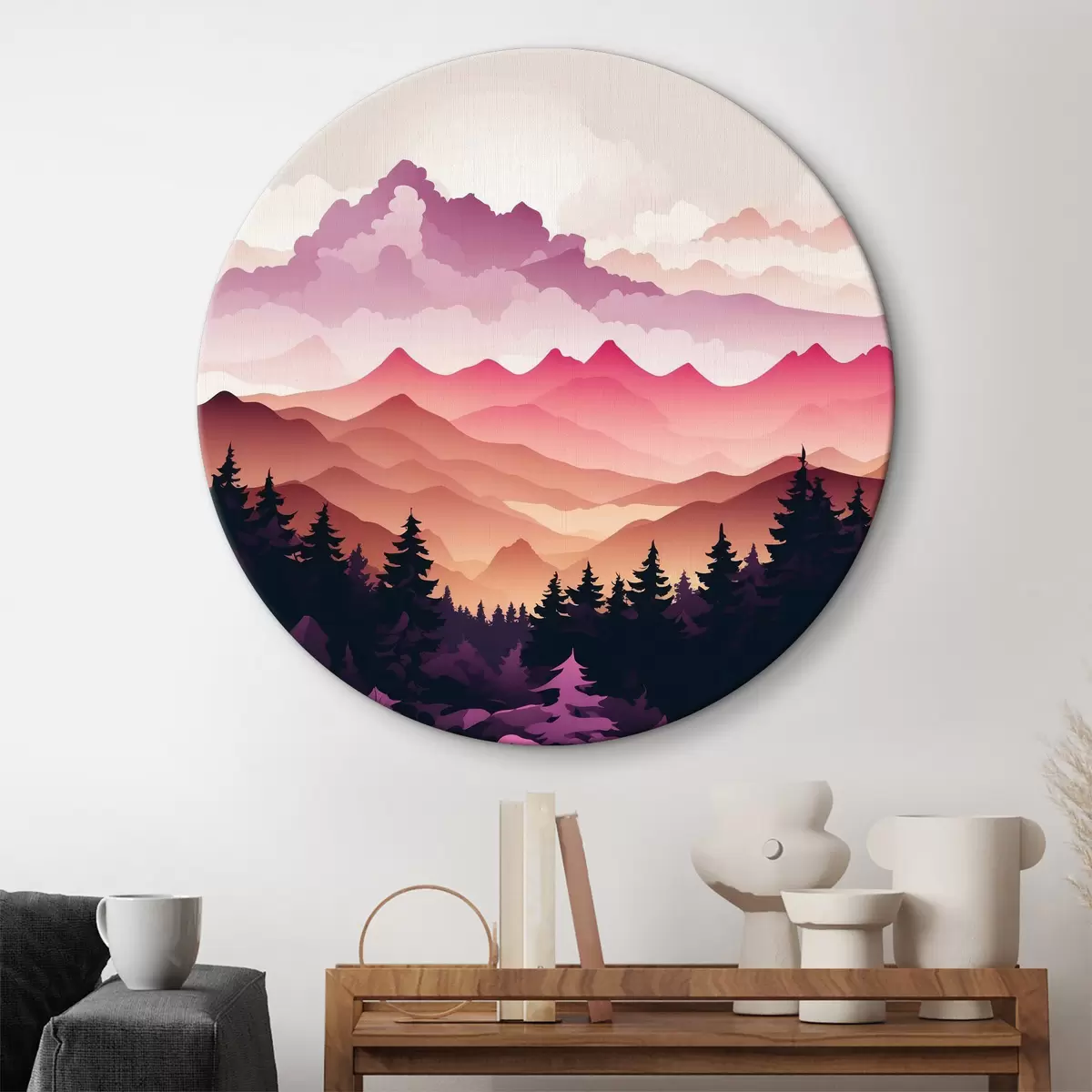 Кругла картина Захід сонця над мирними горами Nr r36528