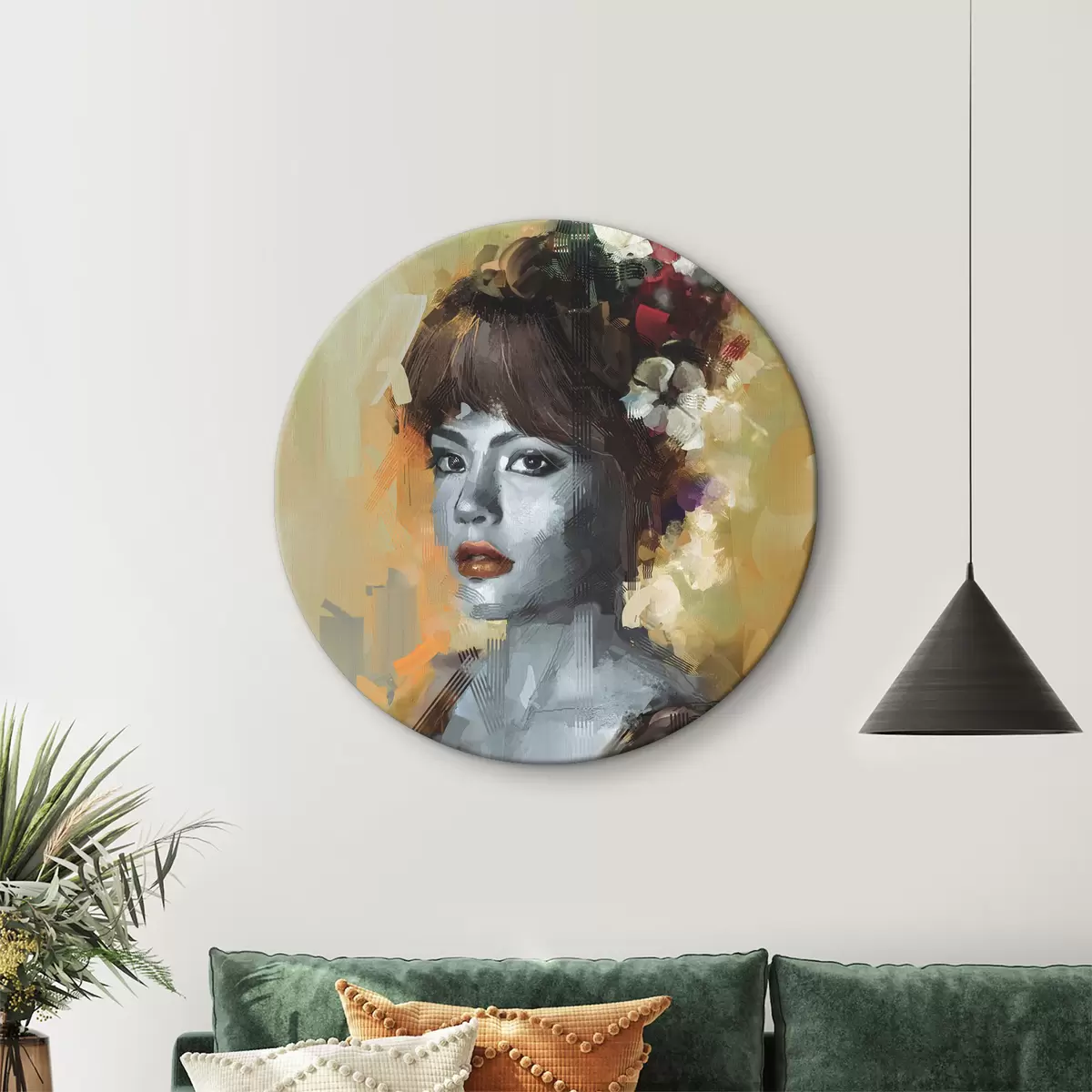 Кругла картина Жінка з квітами у волоссі Nr r36575